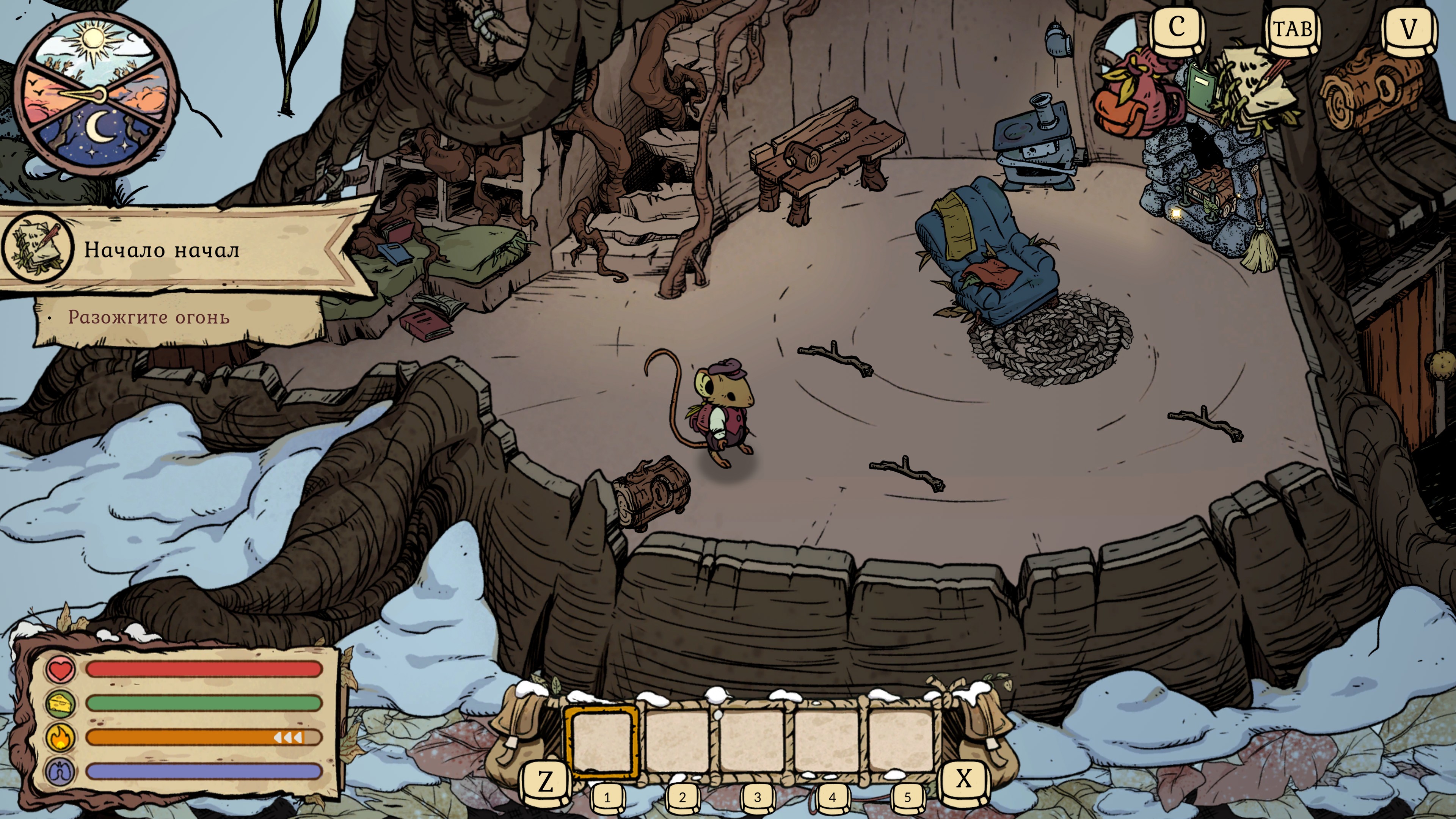 Описание: Бросьте вызов дикой природе. Winter Burrow - это уютная инди-игра про выживание в зимнем лесу, где вы играете за мышонка, который возвращается домой и чинит свою разрушенную нору, собирая ресурсы, создавая инструменты, вяжа одежду и готовя пироги, знакомясь с леcными обитателями и раскрывая тайну исчезновения своей тёти, предлагая медитативный геймплей с элементами крафта, строительства и исследования.