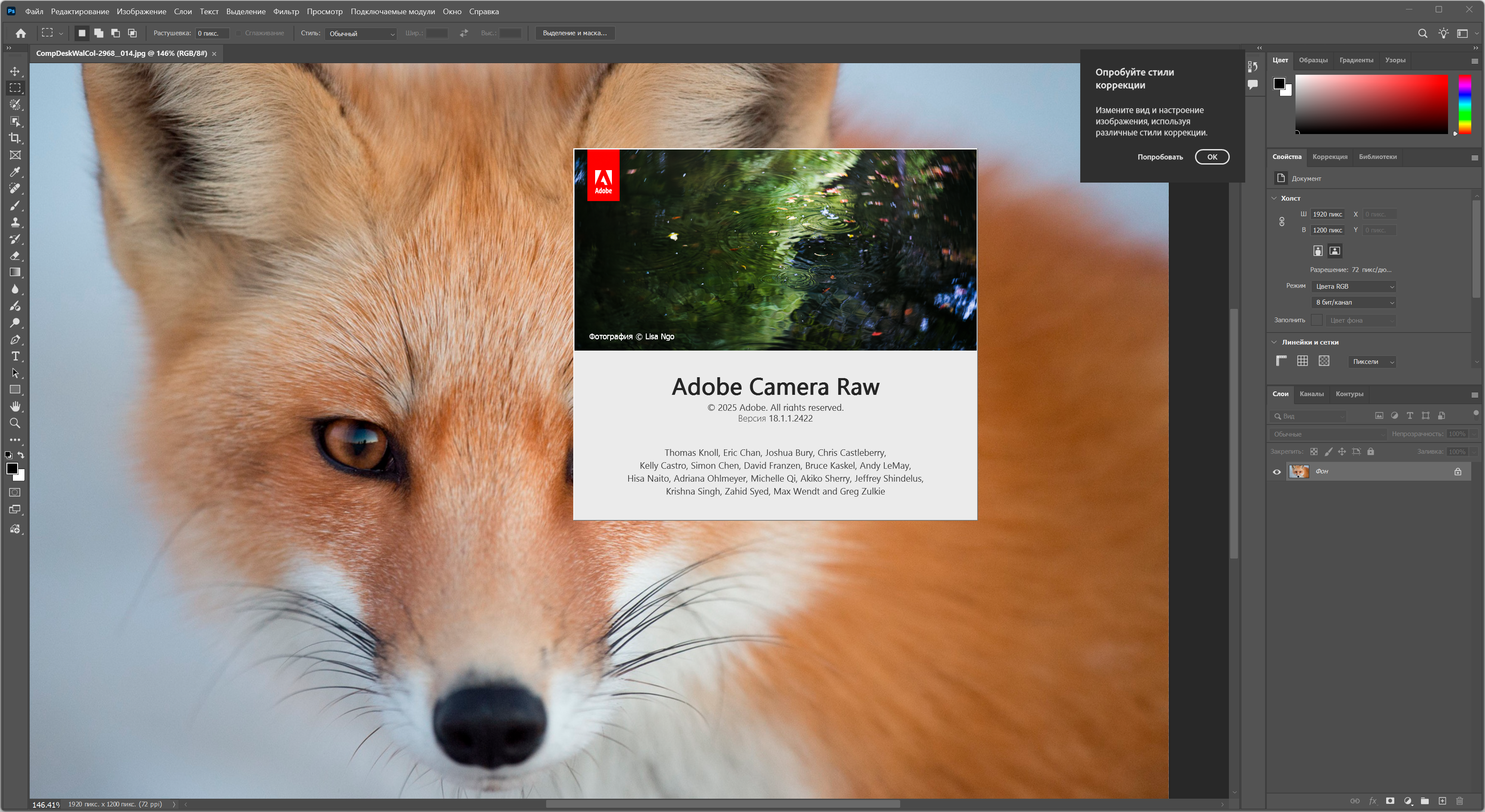 Описание:Adobe Photoshop 2026 - новая версия программы для обработки растровой графики. Поддерживается множество графических форматов. Adobe Photoshop позволяет как создавать новые изображения, так и редактировать их. Фотошоп применяют для создания фотореалистических изображений, для работы с цветными отсканированными изображениями, для ретуширования, цветокоррекции, коллажирования, трансформации графики, цветоделения и т.д. Adobe Photoshop располагает всеми методами работы с точечными изображениями, при этом имеет возможность работы со слоями и использует контуры. Adobe Photoshop предоставляет все необходимые средства для коррекции, монтажа, подготовки изображений к печати и высококачественного вывода. - Лечение: проведено