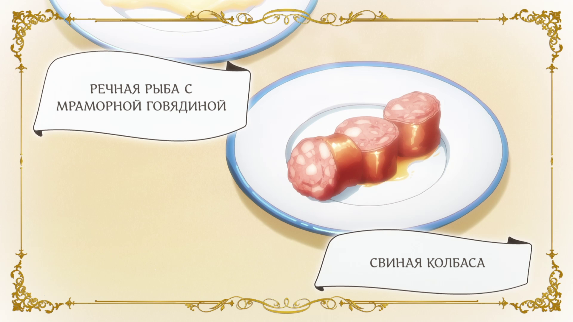 01. Вяленое мясо будет нашим доказательством / A Jerky Is a Promise: Skatzbitt 02. Предложение и подарок / A Proposal from Above with a Gift 03. Шашлычки из мяса Королевского Мудла / Grilled Skewers of Prime Meat: Royal Moodle 04. Сигнальный огонь к отбытию / Signaling Departure with a Pillar of Flame 05. Ночь в крепости Риттерд / Night at Fort Ritterd 06. Сезонное блюдо: Хорошо прожаренный в кляре рыбомонстр / In Season: Battered and Deep-Fried Monster Fish 07. Те, кто наследуют имя Галбрейтов / Those Who Inherit the Galbraith Name 08. Применение дымчатого кварца / Uses for Cloudy Quartz 09. Решительная прожорливая злодейка / The Voracious Villainess`s Resolve 10. Намерения безумного герцога / The Blood-Mad Duke`s Intentions 11. Кисло-сладкий фрукт / Sweet or Sour Fruit 12. Выход в свет Прожорливой злодейки / The Voracious Villainess`s First Appearance