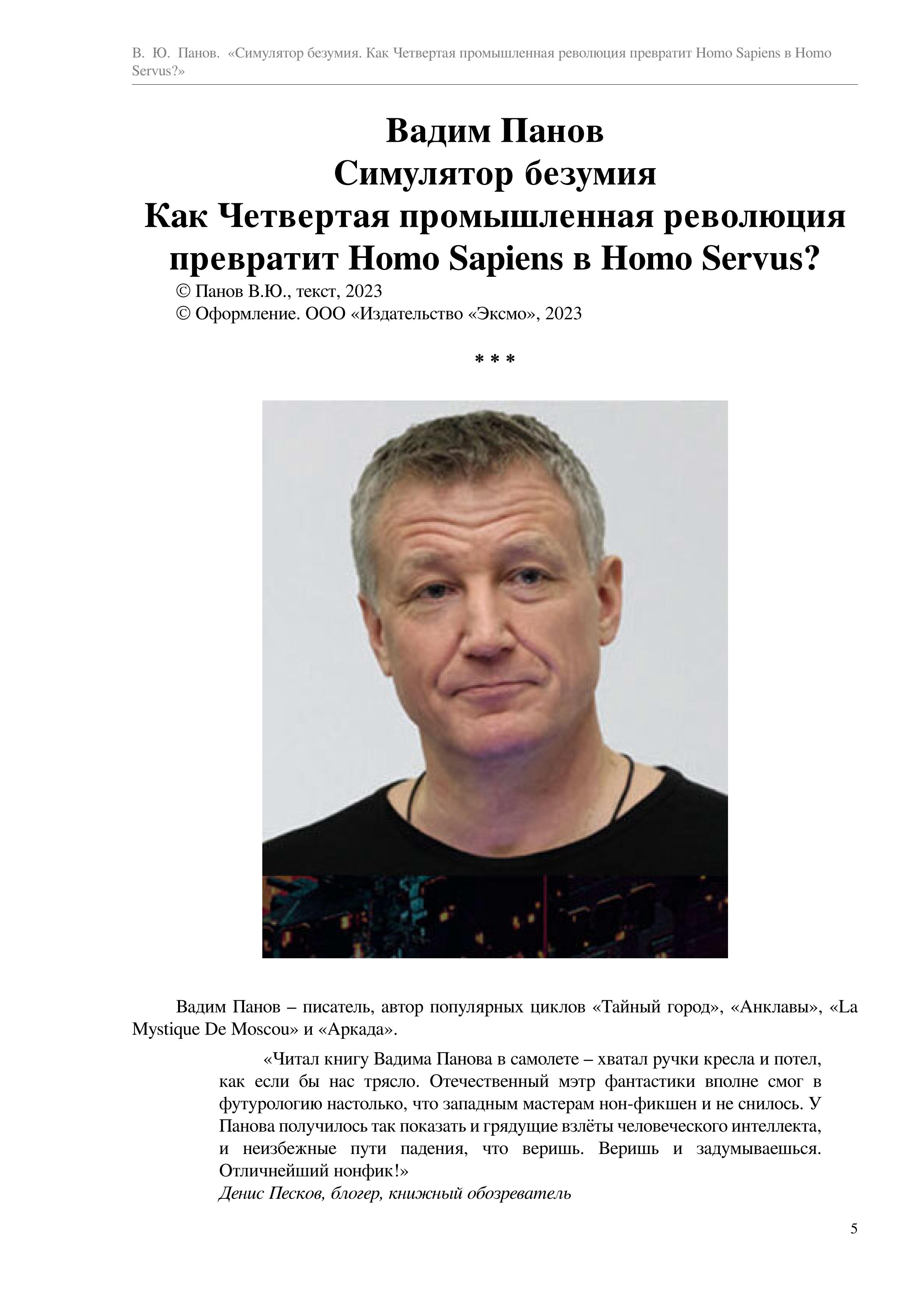 Вадим Панов | Симулятор безумия. Как Четвертая промышленная революция превратит Homo Sapiens в Homo Servus? (2023) [PDF, FB2, EPUB]
