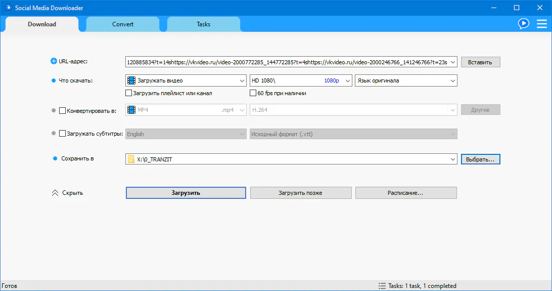 Social Video Downloader обладает понятным и простым в использовании интерфейсом.