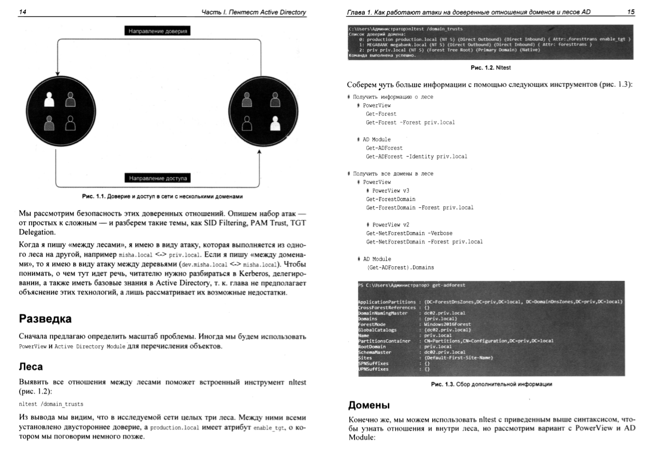 Описание:Рассмотрена внутренняя архитектура Windows и Active Directory, подробно описаны доверенные отношения доменов и лесов, особенности работы Read-only Domain Controllers, уязвимости групповых политик и принципы управления привилегиями. Рассказывается о работе с Kerberos, инжекте и дампе, билетов, угоне пользовательских сессий, использовании WinAPI, COM и Named Pipes в пентесте, а также об обращении к нативному коду из C#. Описаны методы обхода средств защиты информации, включая анхукинг ntdll.dll, предотвращение подгрузки DLL, лазейки для исполнения стороннего кода, применение аппаратных точек останова, обход AMSI и написание раннеров для шелл-кода на .NET. Приводятся практические рекомендации по обфускации вызовов WinAPI и защите корпоративных сетей от атак.