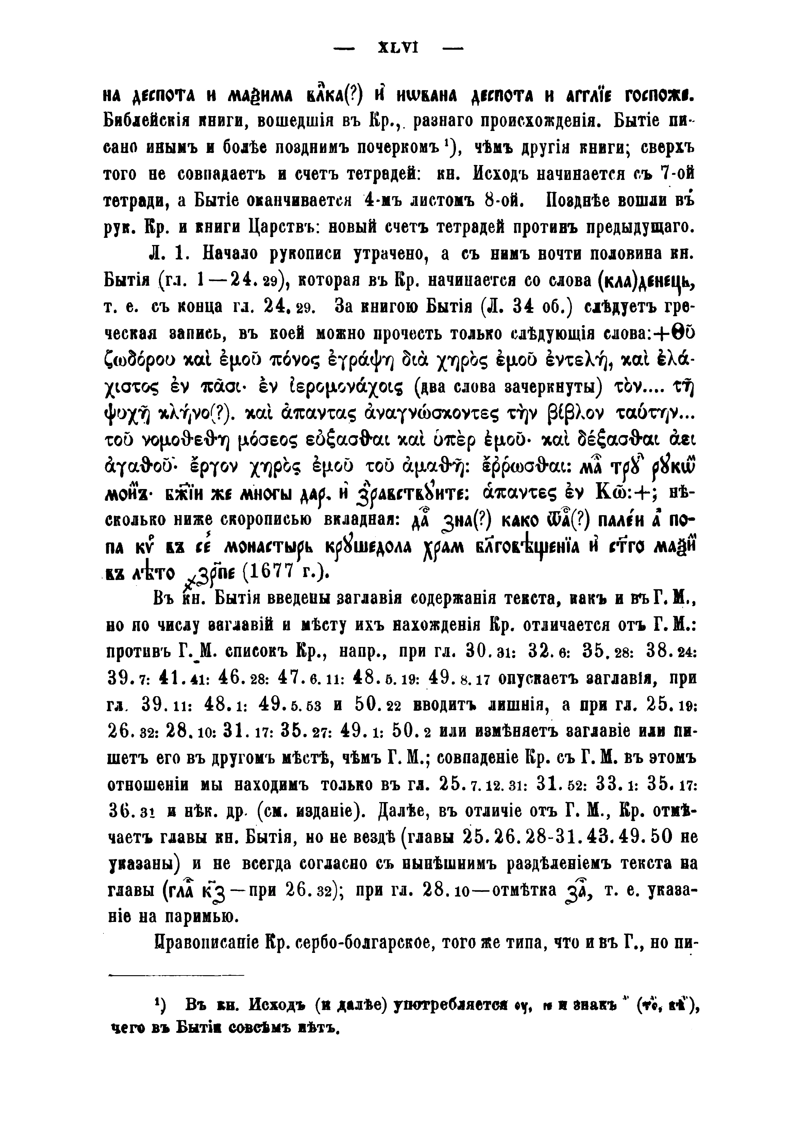 Описание:Фундаментальный труд Александра Васильевича Михайлова (1859–1927), профессора Императорского Варшавского университета (1895–1914), представляет собой текстологическое исследование церковнославянского перевода книги Бытия, существовавшего в паримейной (богослужебной, в извлечениях) и четьей (небогослужебной, со сплошным текстом) версиях. В первой части была подробно разобрана паримейная версия и дано описание рукописей как паримейных, так и четьих. В качестве приложения к работе было подготовлено, впервые в истории славянской библеистики, критическое издание церковнославянского Бытия, выходившее отдельными выпусками: за основу был взят текст из восточнославянской рукописи Румянцевского музея (ныне РГБ) — ф. 310 (Собрание рукописных книг В. М. Ундольского), № 1, 1480-е гг., Москва; разночтения приведены по 25 спискам четьей версии (южно- и восточнославянских редакций). Для удобства ориентации в сиглах этих рукописей в приложении даётся их список с указанием современных шифров хранения и ссылками на интернет-страницы с их фотокопиями (при наличии).