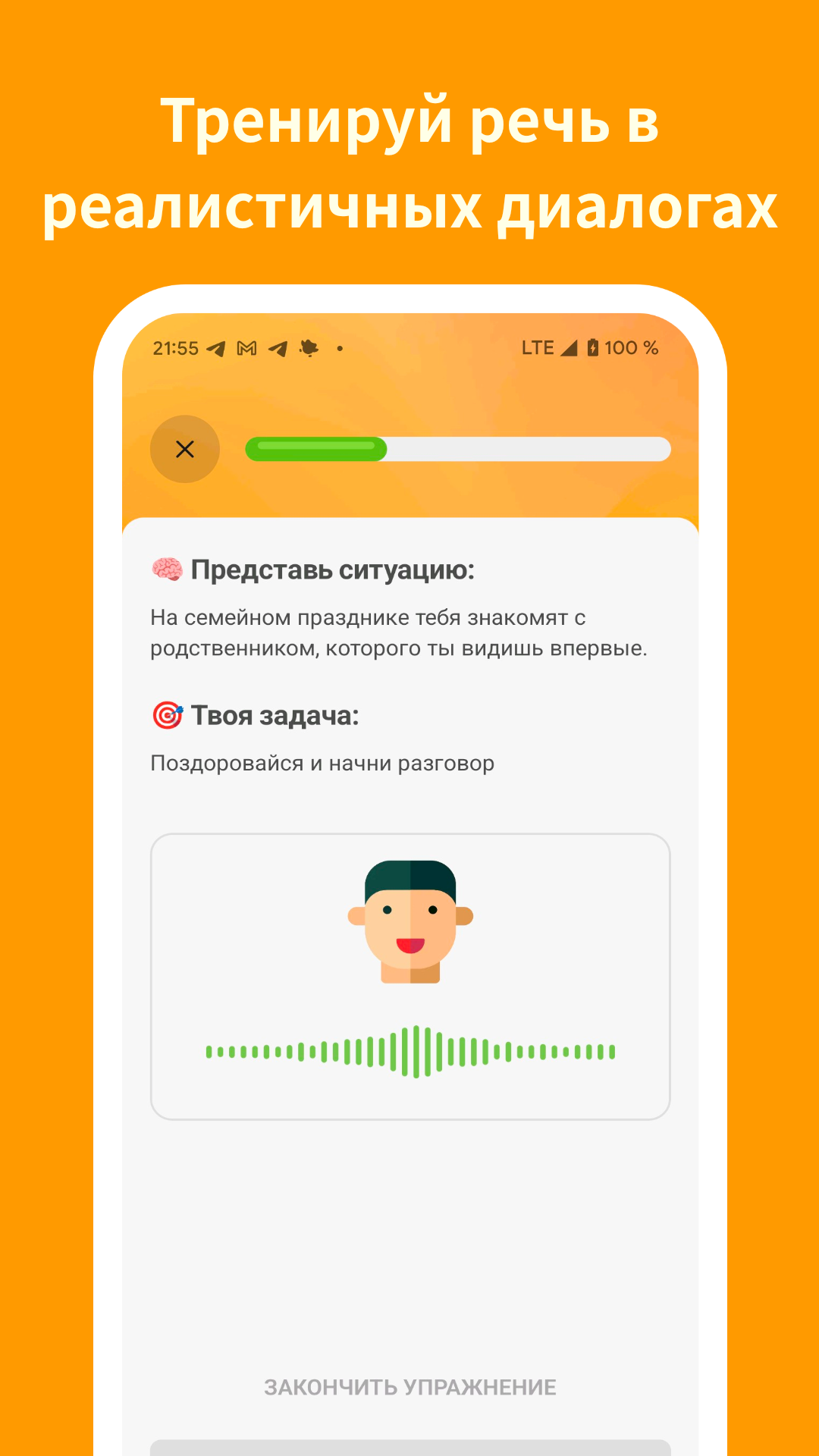 📈 Видимый прогресс — каждый уровень открывает новые темы, типы общения и сценарии разговоров.