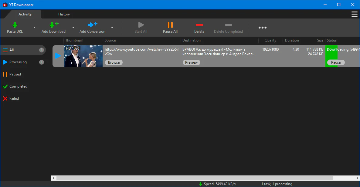 Ускорьте загрузку файлов YT Downloader имеет продвинутый механизм ускорения загрузки, который позволяет загружать видео на 500% быстрее, чем обычная скорость.