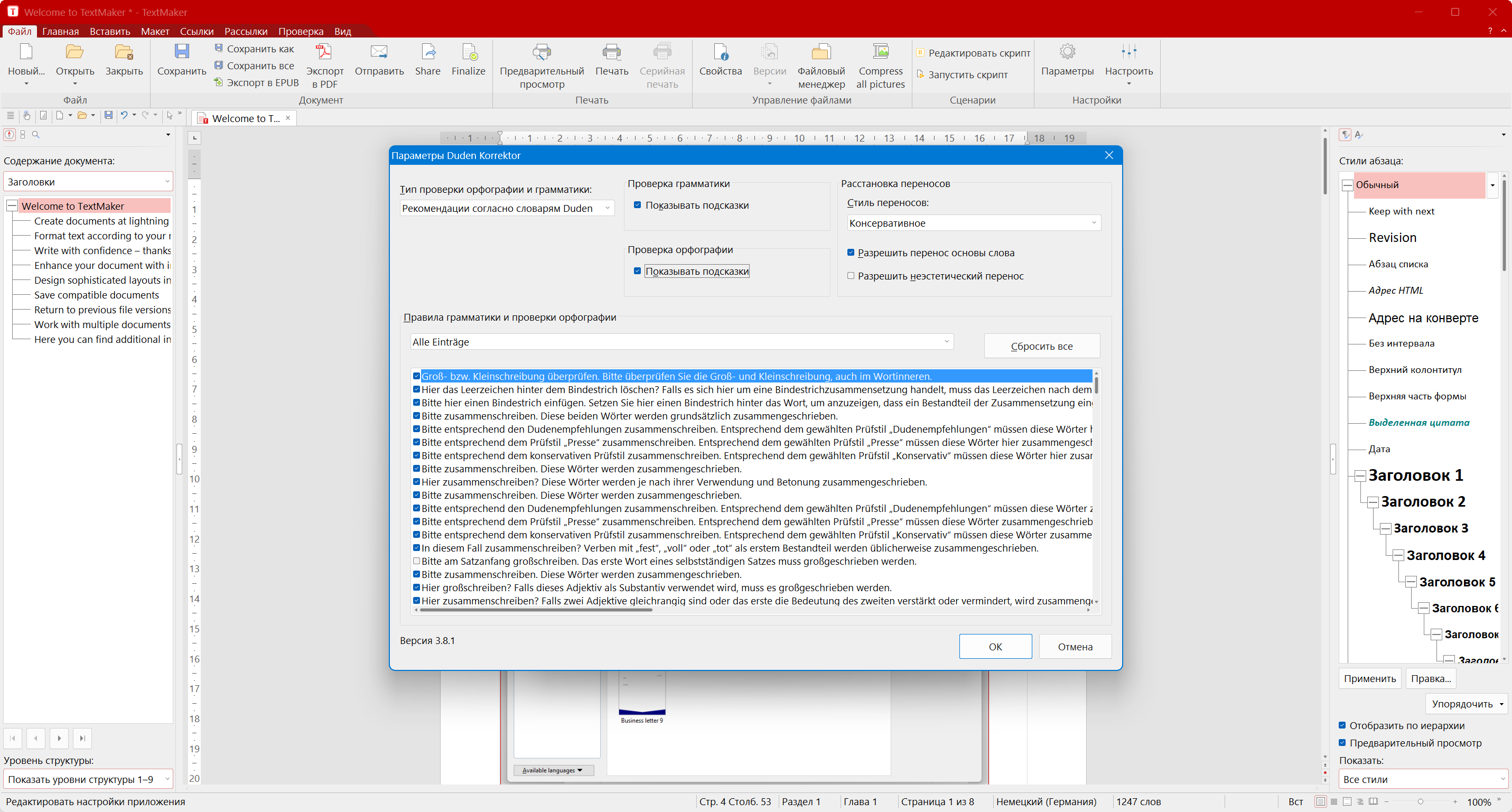 - Последняя версия Duden Korrektor для проверки грамматики немецкого языка