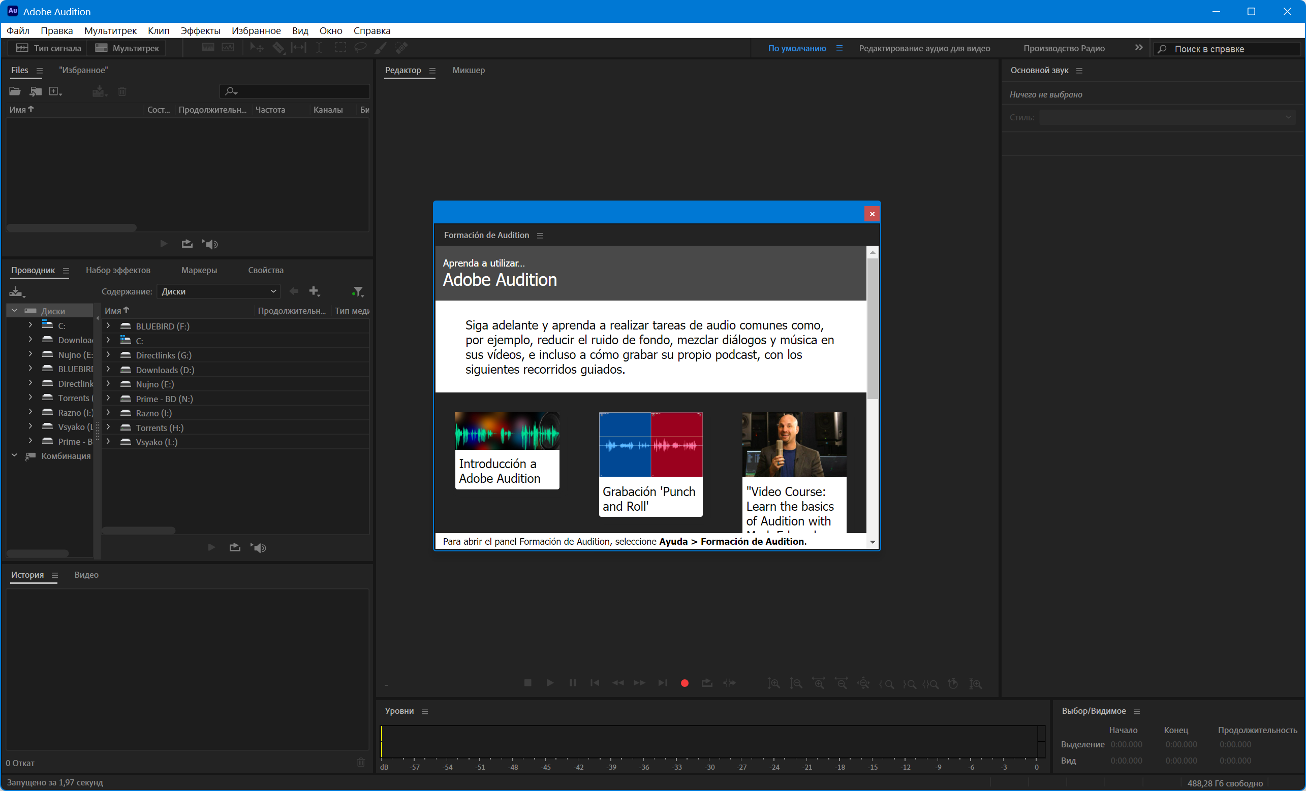 Использовать интегрированные инструменты - Adobe Audition предлагает целостное решение для редактирования и микширования аудио-файлов. Встроенные режимы просмотра (многодорожечный и предназначенный для редактирования), спецэффекты в режиме реального времени, поддержка лупов, средства анализа, функция восстановления и поддержка видеоряда обеспечат вам неограниченные возможности в области обработки аудио-файлов.