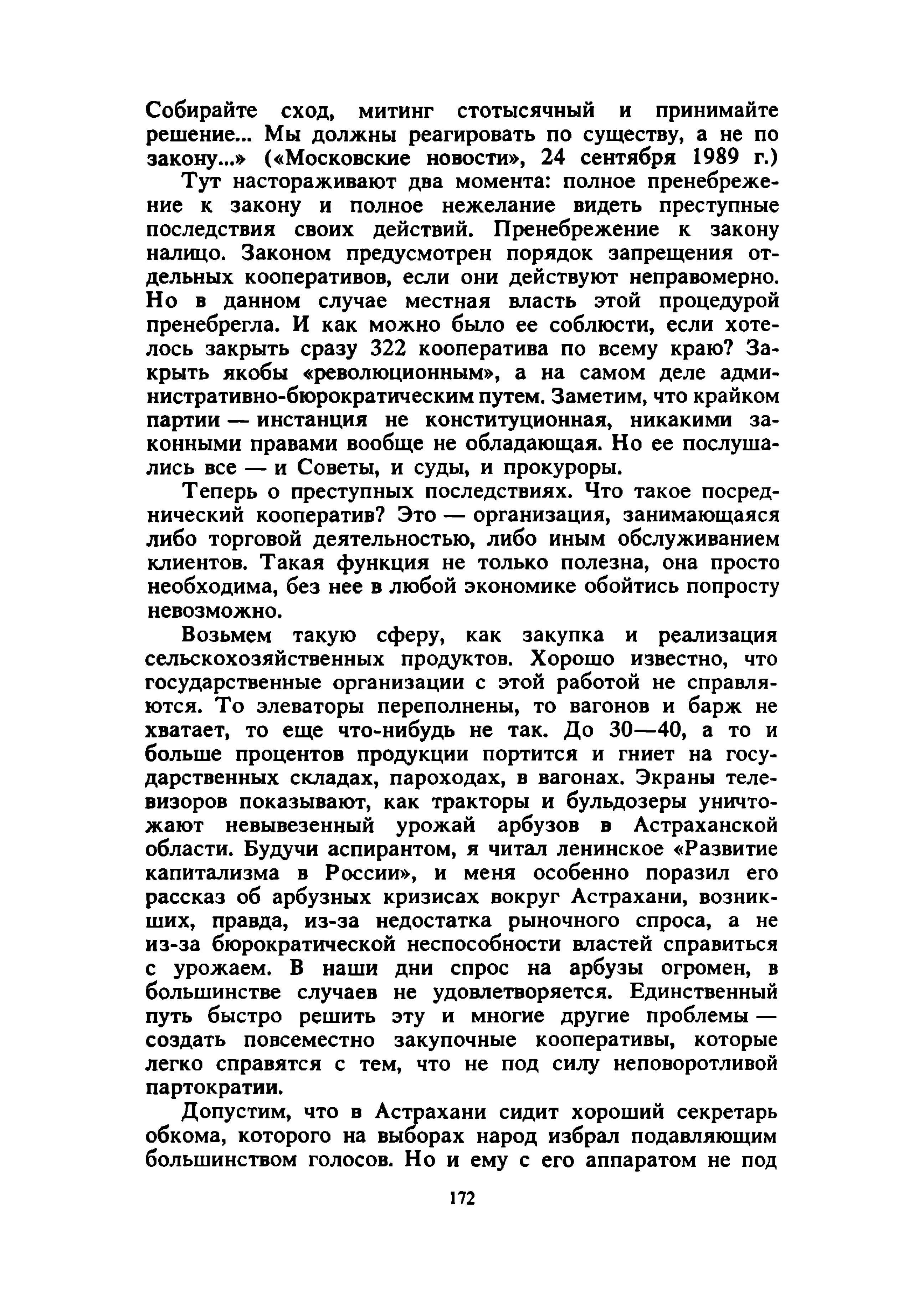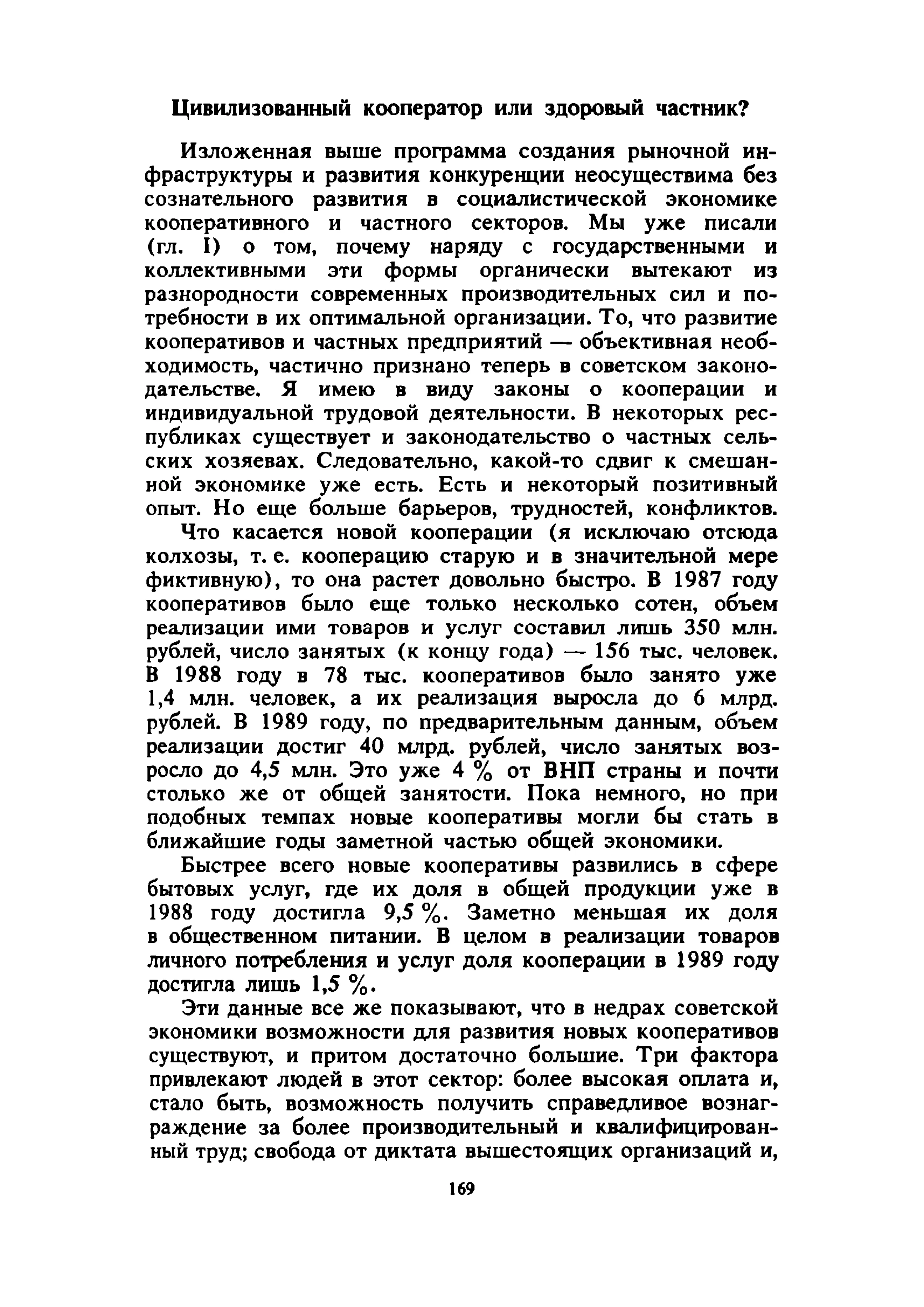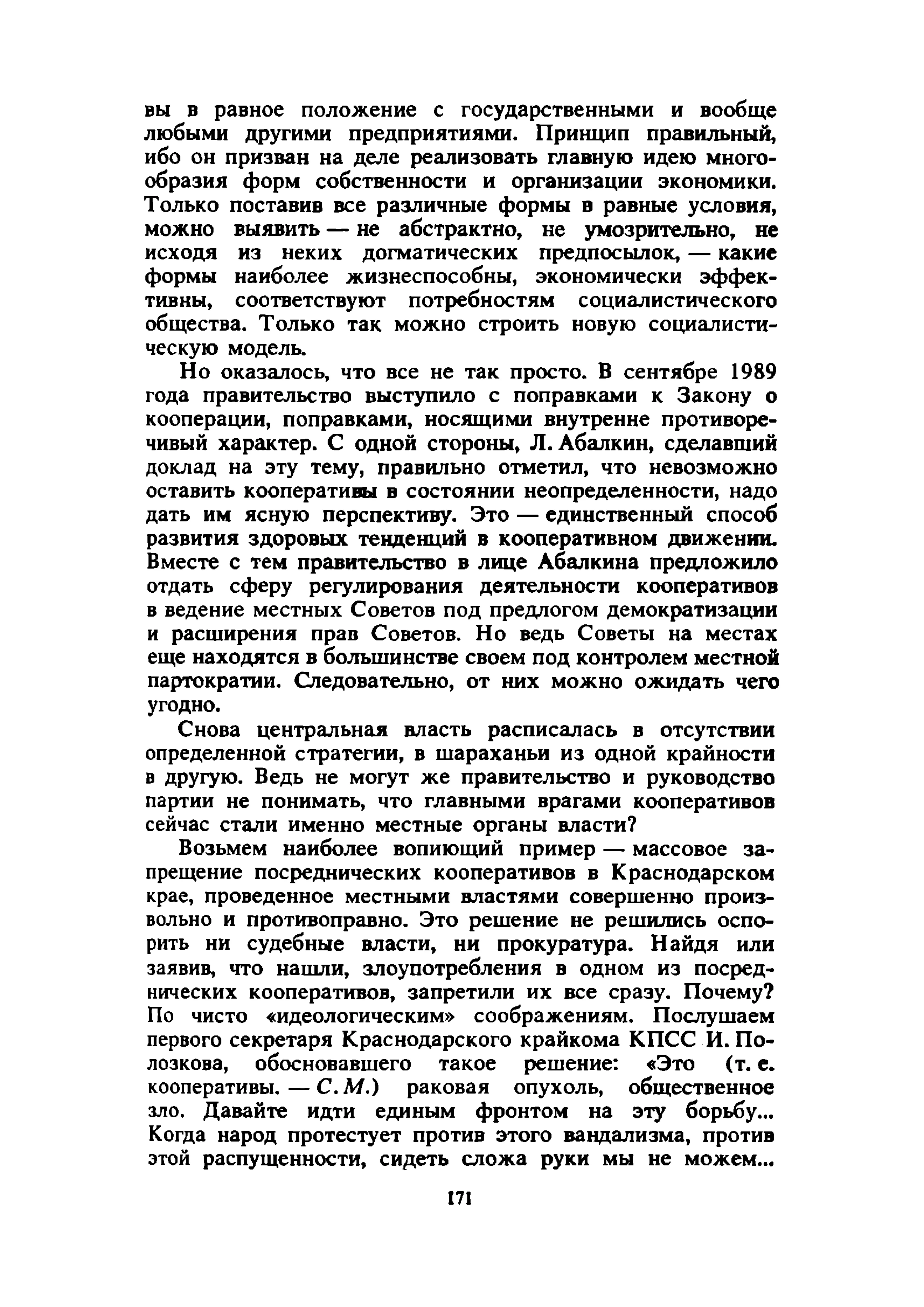 Описание:Известный экономист разбирает ключевые вопросы советской экономики, показывает, что единственным шансом социализма на выживание является переход к смешанной экономике, в которой свободно конкурируют все формы собственности, в том числе и частная, но доминируют социалистические, коллективные формы. В полемике с Л. Абалкиным, О. Лацисом, Г. Поповым и другими советскими авторами он выдвигает свою концепцию преобразования государственной собственности, развития кооперации и частного сектора, легализации определенной чести нынешней теневой экономики. Автор показывает несостоятельность утверждений о чрезмерных доходах населения, бесперспективность предлагаемого некоторыми «реформаторами» решения проблем за счет трудящихся, а также недостаточность намечаемых правительством мер. Автор выдвигает свою альтернативную программу достижения рыночного, денежного и финансового равновесия, перехода к конвертируемому рублю, предотвращения экономической катастрофы.
