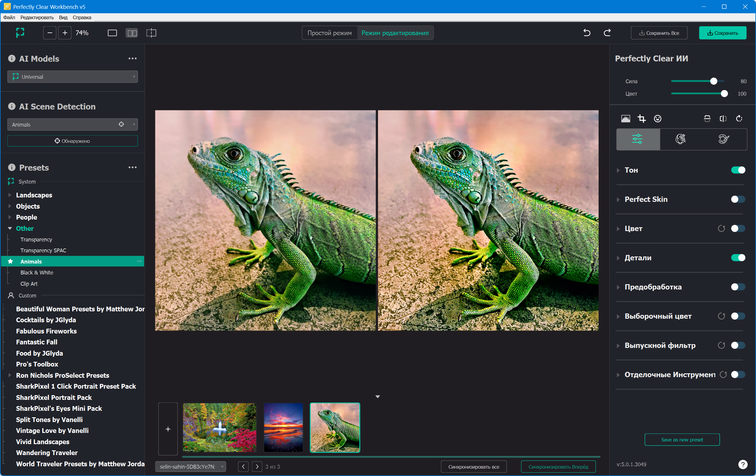 Традиционные методы исправления изображений не всегда приводят к желаемому результату. Данный продукт заслуживает вашего внимания, чтобы доверить ему автокоррекцию своих фото с бесценными воспоминаниями. Perfectly Clear даст вам возможность мгновенно довести фотографию до совершенства. Просто запустите плагин и выбранные фотографии будут автоматически исправлены.
