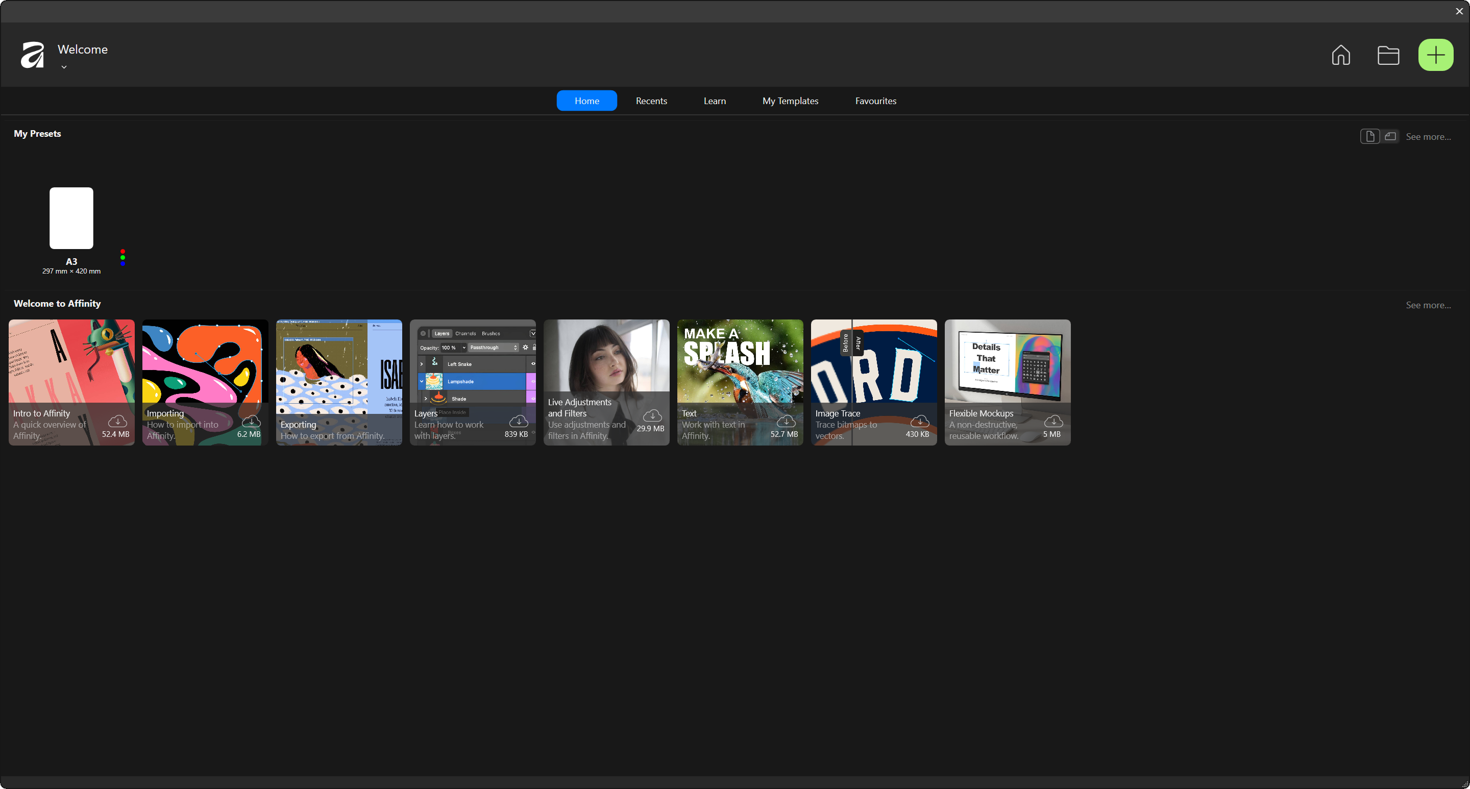 Программы Affinity имеют достаточно активное сообщество, потому вы легко найдёте видео и текстовые инструкции по использованию, которые помогут разобраться, что к чему. Более того, базовые уроки доступны прямо внизу окна открытия имеющегося или создания нового документа.