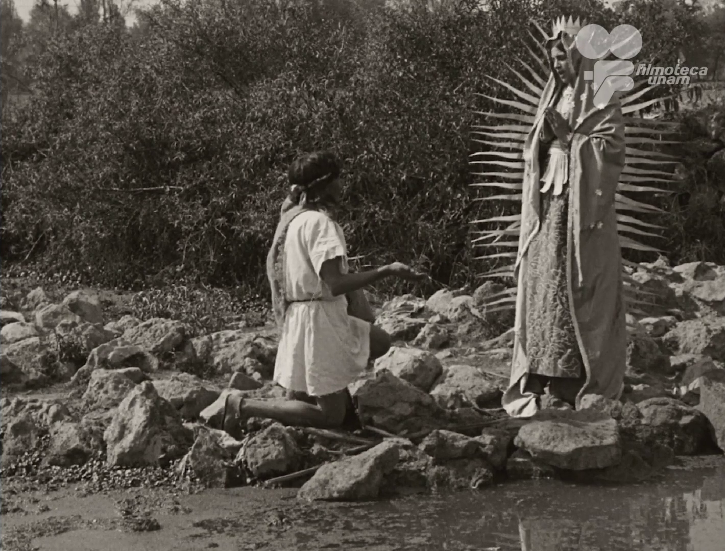Описание: Католики Латинской Америки и особенно Мексики глубоко почитают Гваделупскую Богоматерь. Этот фильм представляет собой экранизацию народных преданий о возникновении этого культа. Он обрамлен некой бытовой, житейской историей. Жених Люпиты Флорес отправлен с деликатной дипломатической миссией в Европу, объятую пламенем Первой Мировой войны. Спустя время пришло сообщение, что корабль, на котором он плыл, торпедирован германской подводной лодкой, большая часть пассажиров погибли. Люпита молится Святой Марии Гваделупской о спасении своего жениха. Так как из-за тревоги не может уснуть, то решает на ночь почитать книгу, рассказывающую о давних событиях... Не думаю, что этот фильм стоит смотреть убежденным атеистам. В кадре присутствует логотип киноархива.