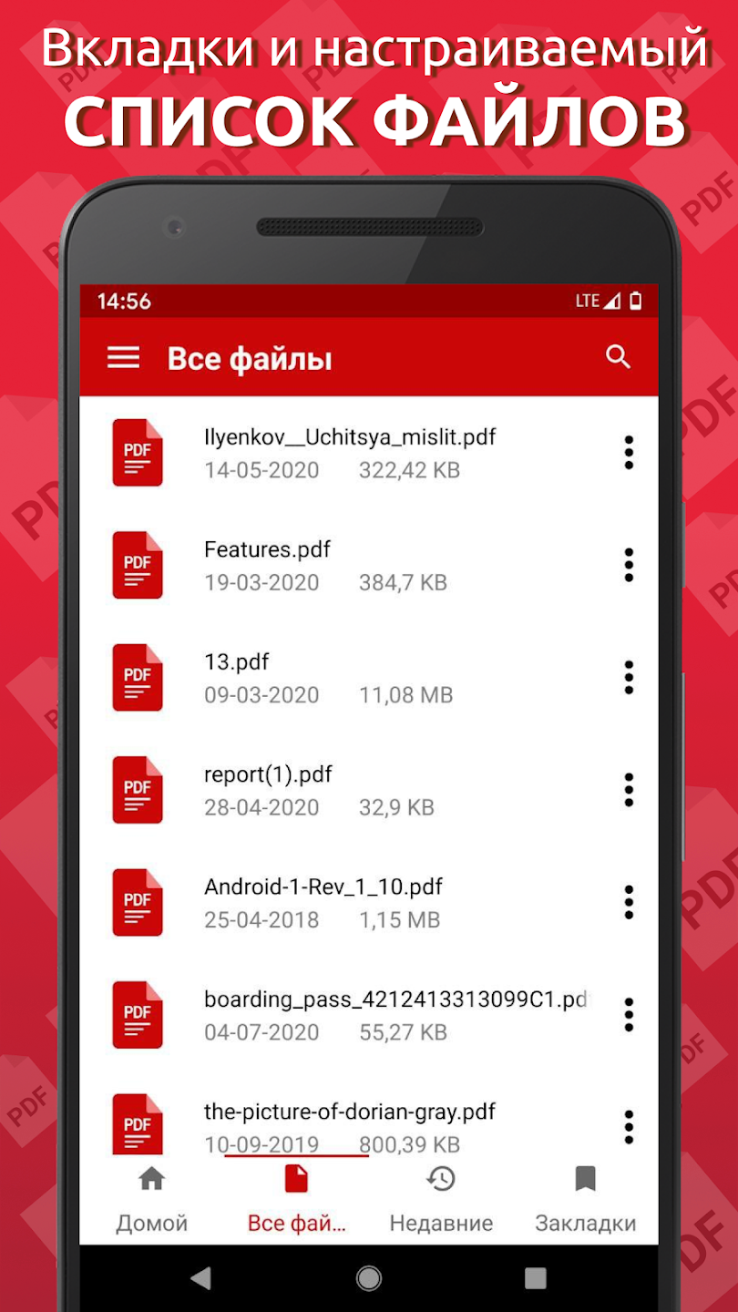 Простой PDF Reader автоматически распознает все хранящиеся на вашем устройстве документы. Читалка сформирует список pdf файлов и вам останется только выбрать нужный документ для просмотра.