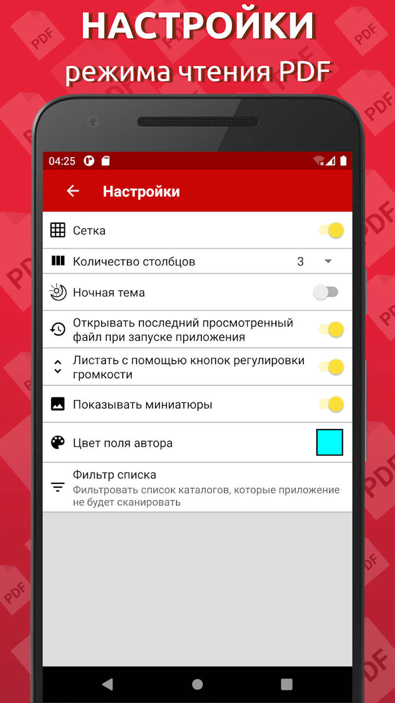 Описание:Простой и быстрый инструмент для просмотра документов, сохранёных в формате .pdf. В наличии возможность включения ночного режима при просмотре документов. С лёгкостью выполняет поиск по папкам вашего устройства. Поддерживает сохранение закладок. Присутствуют удобные настройки отображения при просмотре.
