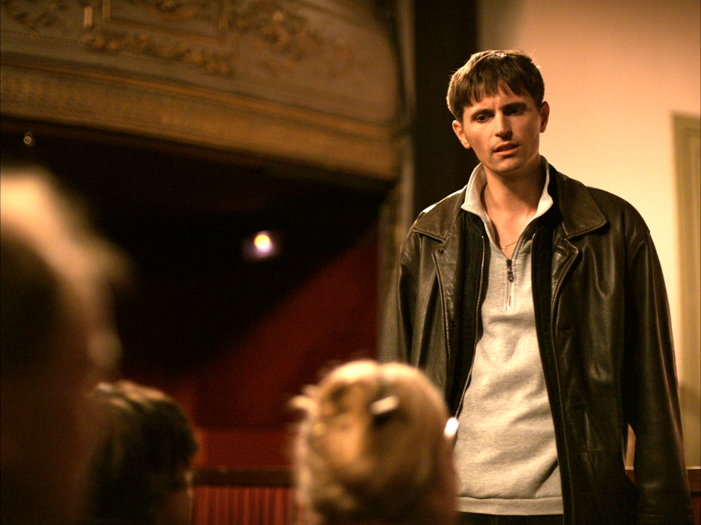 Описание: Полупустой театральный зал. Актеры рутинно играют скучную комедию из семейной жизни. Внезапно со зрительского места встает мужчина и выражает свое недовольство качеством исполнения. После нескольких минут перепалки с актерами его выводят из зала. Казалось, инцидент исчерпан. Но не тут-то было.