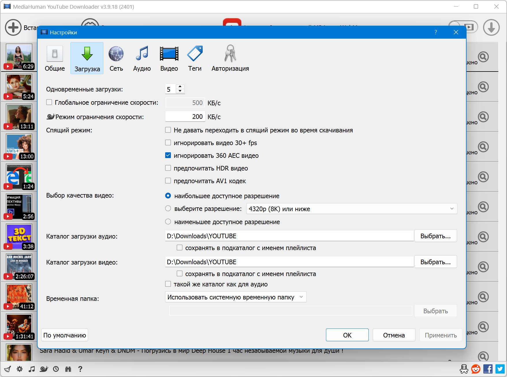 HQ, HD, 4K или 8K Программа поддерживает загрузку всех доступных разрешений, но выбор остается за вами, будет это 720p, 1080p, 4K или 8K, 60 fps или 30.