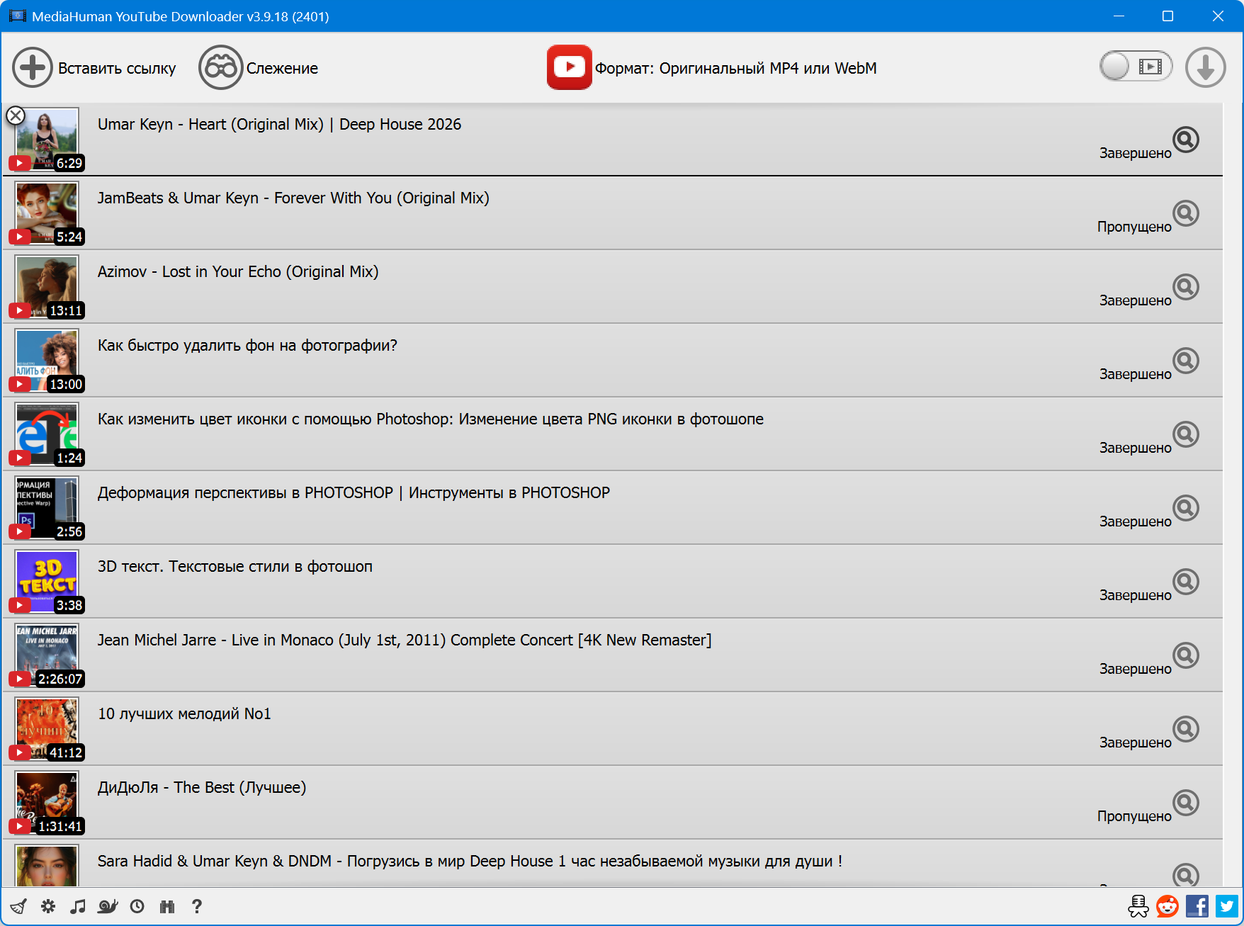 - Скачивает в оригинальном качестве и конвертирует