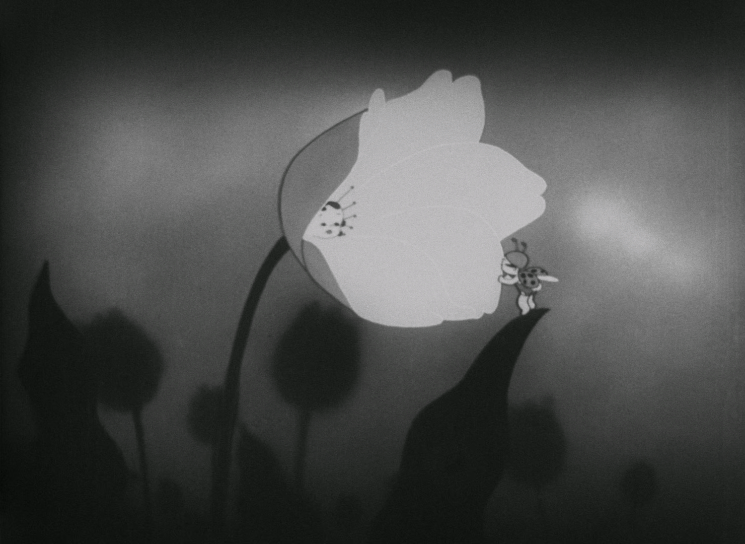 После дождя муха освобождает тюльпан от паутины, и божья коровка оказывается на свободе.