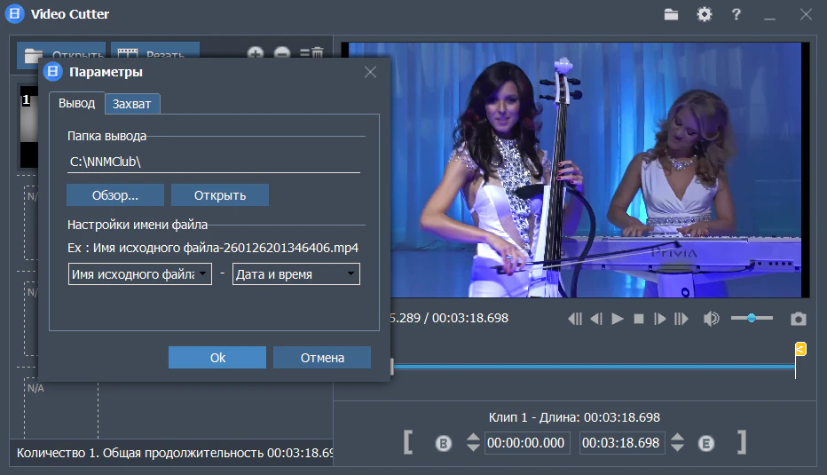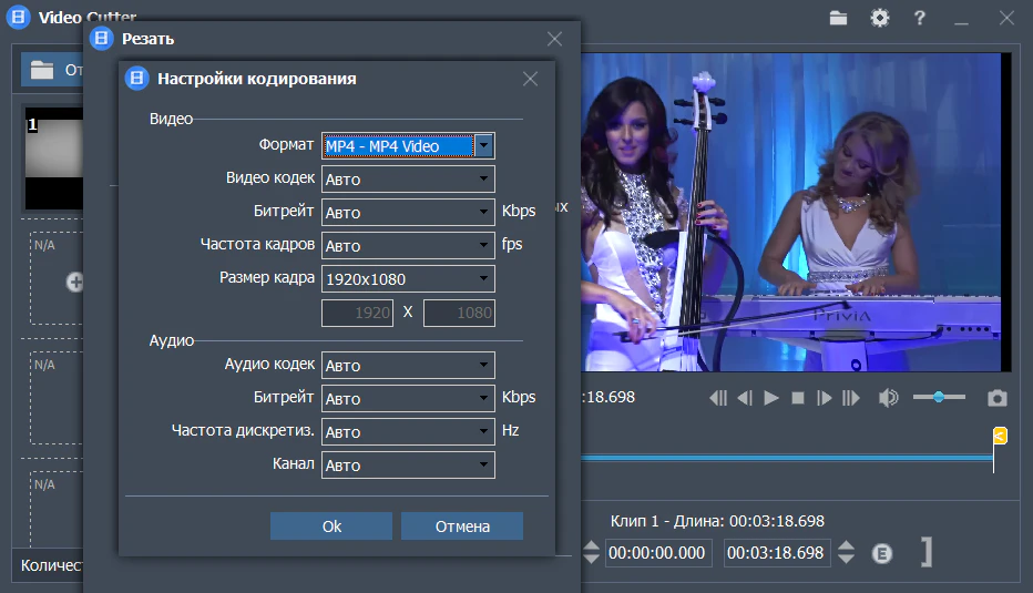 - Обрезка без потерь с тем же качеством, что и исходное видео.