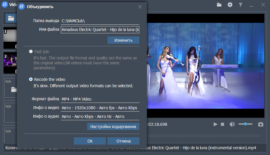 - Объединенное видео может быть в любом видеоформате.