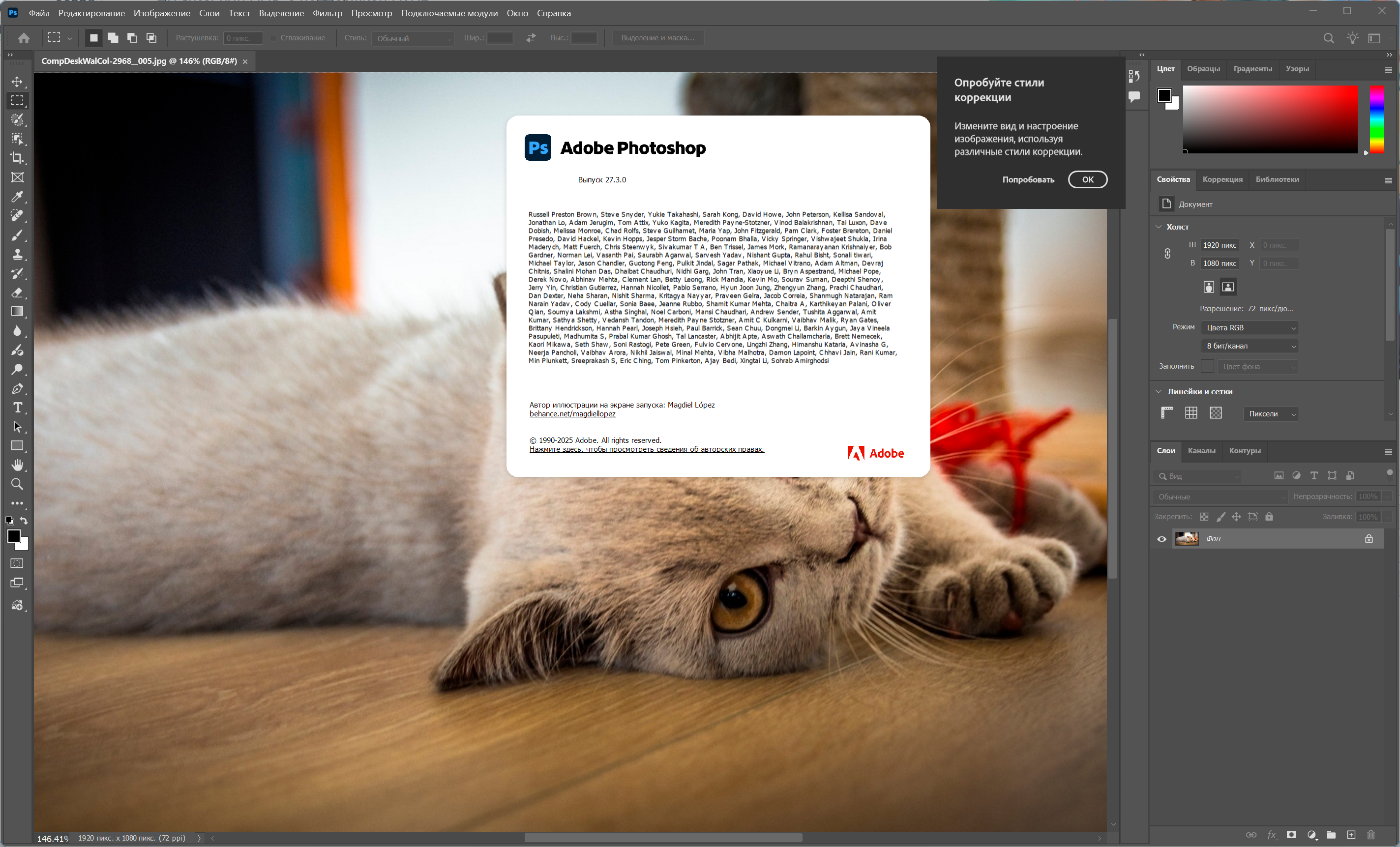 Описание:Adobe Photoshop 2026 - новая версия программы для обработки растровой графики. Поддерживается множество графических форматов. Adobe Photoshop позволяет как создавать новые изображения, так и редактировать их. Фотошоп применяют для создания фотореалистических изображений, для работы с цветными отсканированными изображениями, для ретуширования, цветокоррекции, коллажирования, трансформации графики, цветоделения и т.д. Adobe Photoshop располагает всеми методами работы с точечными изображениями, при этом имеет возможность работы со слоями и использует контуры. Adobe Photoshop предоставляет все необходимые средства для коррекции, монтажа, подготовки изображений к печати и высококачественного вывода. - Лечение: проведено