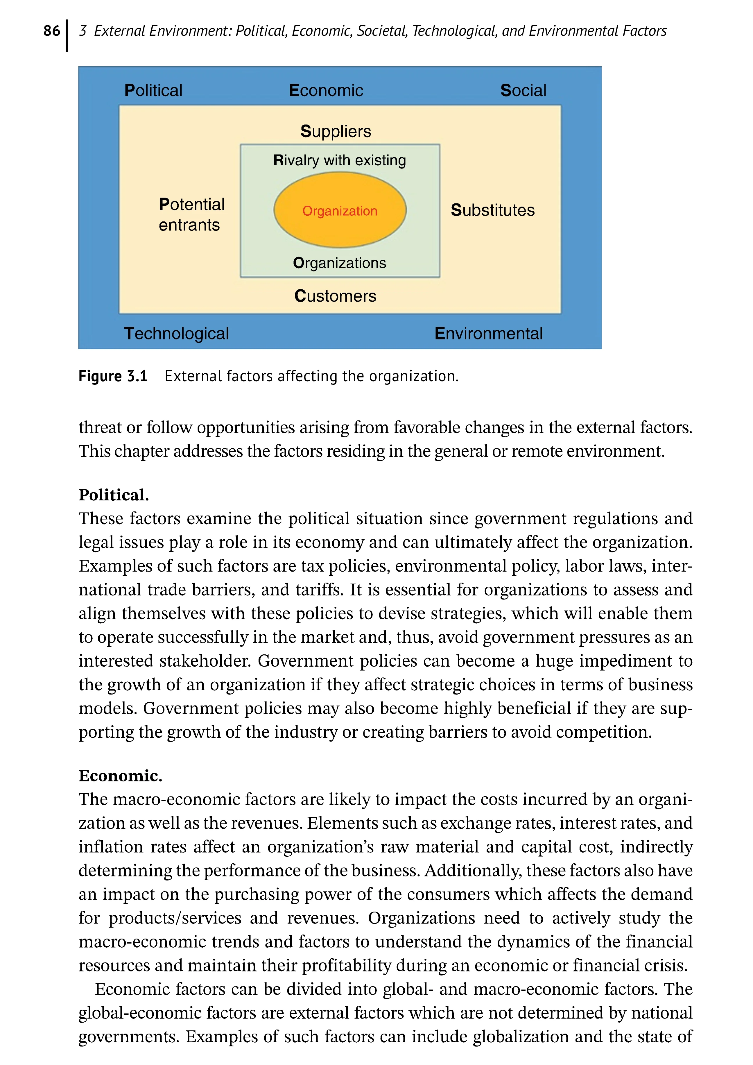 External environments known as exogenous factors (PESTE) and endogenous factors (industry)