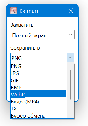 В качестве форматов доступны PNG, JPG, GIF, BMP и MP4.