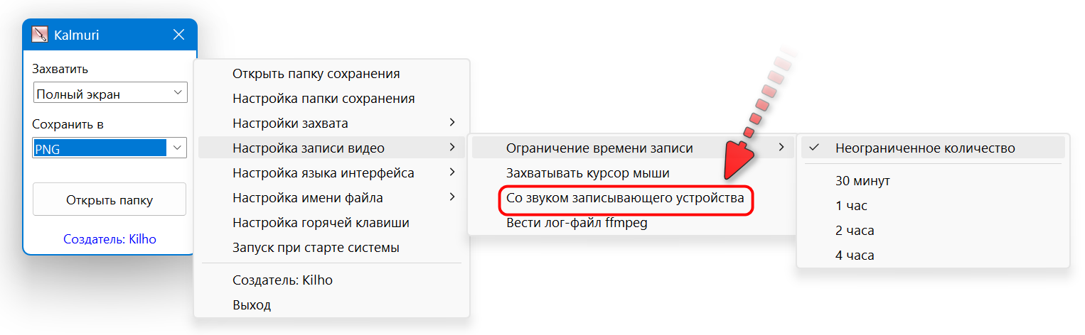 - Поддержка видеозаписи (обозначение всего экрана и области)