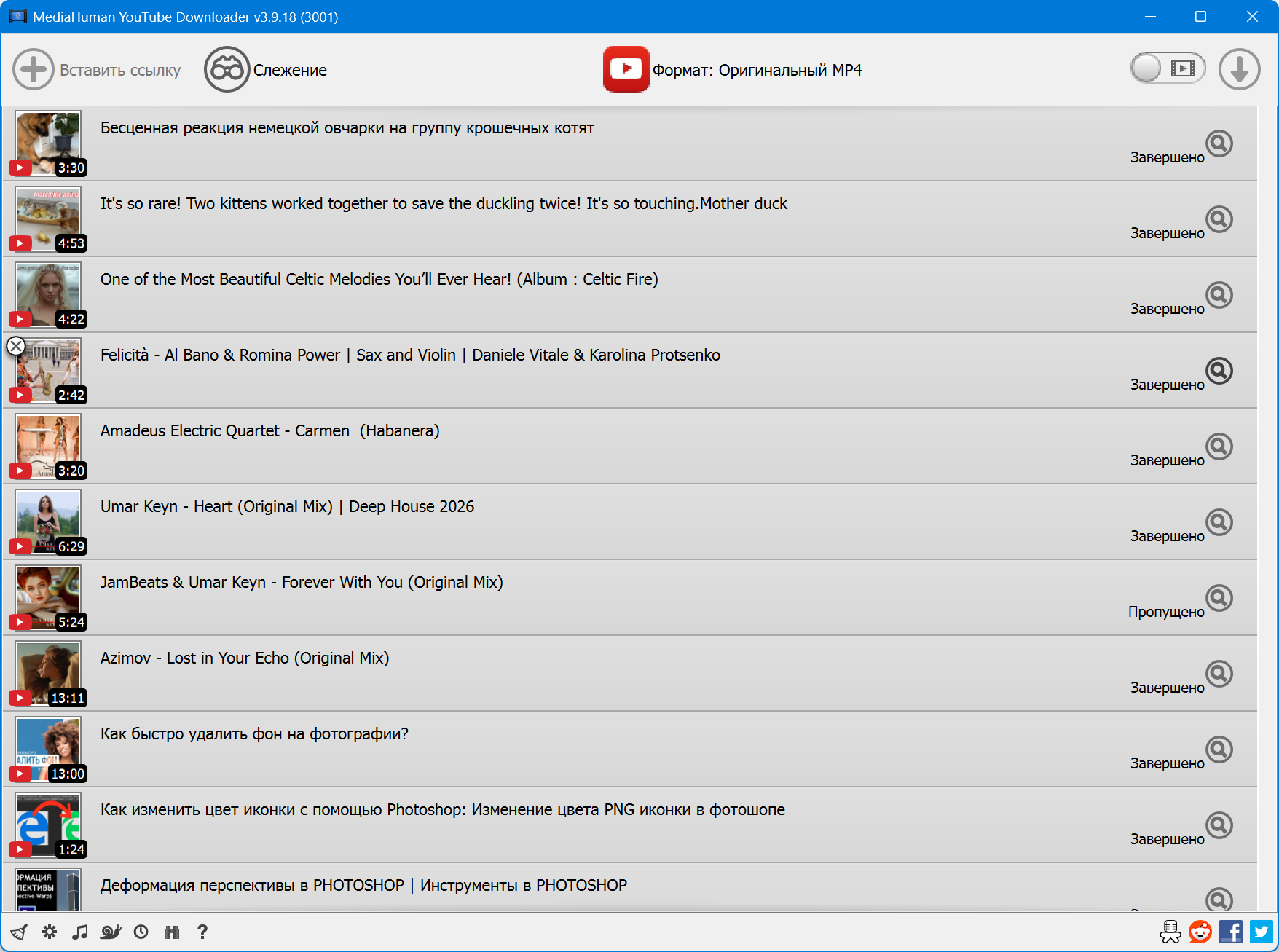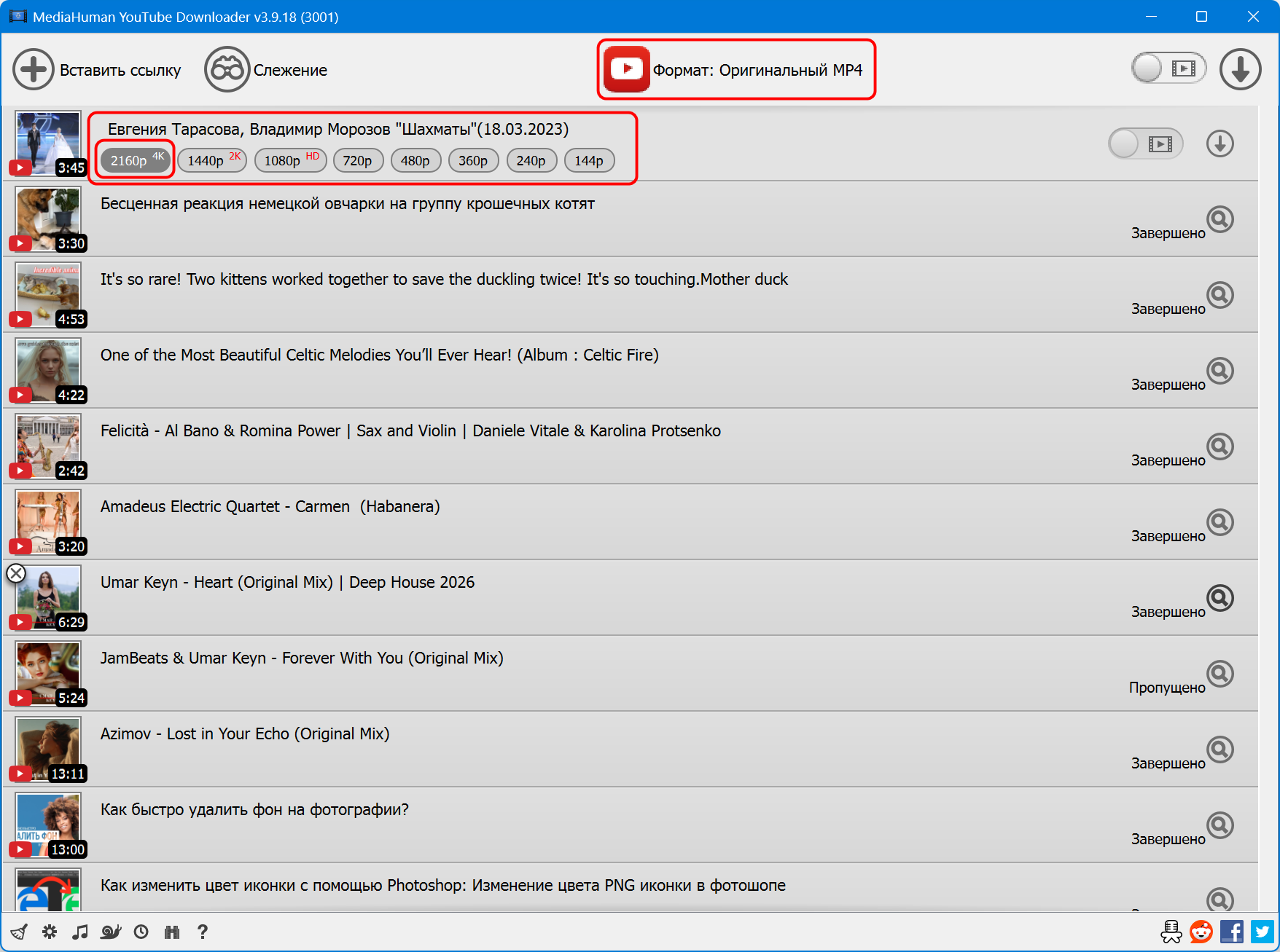 - Скачивает в оригинальном качестве и конвертирует