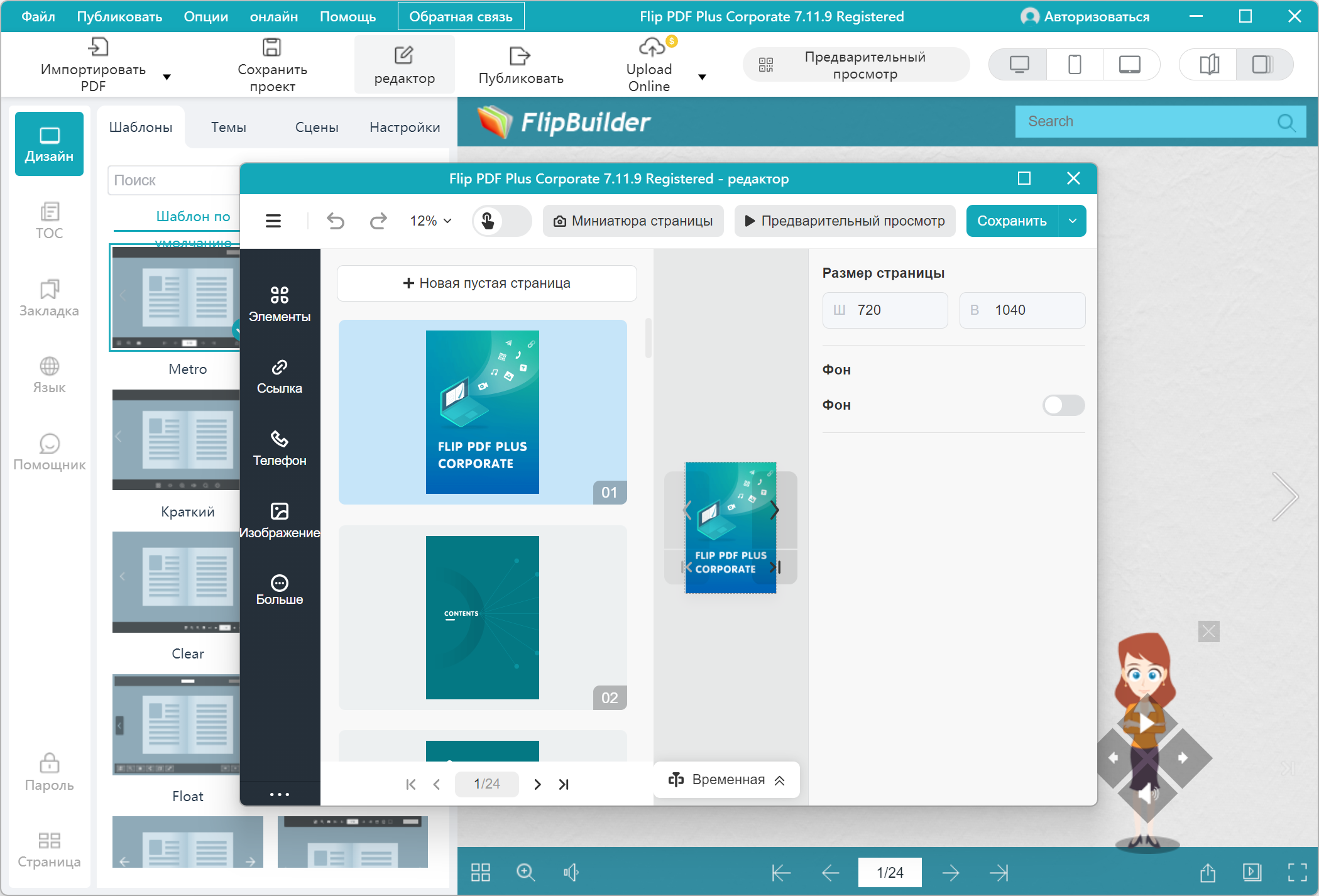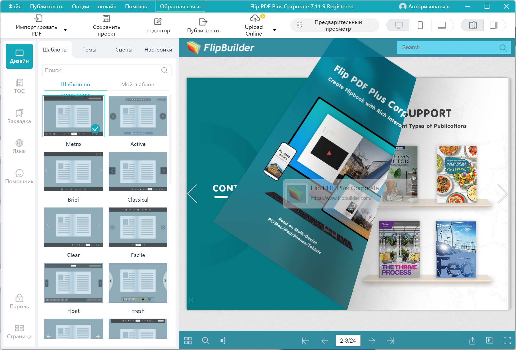 Описание:Flip PDF Plus Corporate - профессиональная версия нашей мощной программы Flip PDF с множеством функций. С помощью Flip PDF можно конвертировать обычный формат PDF в потрясающие буклеты с удивительной покадровой анимацией. Flip PDF предлагает быстрый и легкий способ конвертировать обычные PDF файлы в потрясающие буклеты с эффектом перелистывания страниц и изумительным звуком! Только представьте, теперь вы сможете создавать цифровые журналы и каталоги, похожие на настоящие книги, без специальных знаний программирования! Используя программу Flip PDF можно создать уникальный журнал или каталог, которые будут похожи на цифровые книги. В них можно также сочетать текст и различные изображения, как в стандартном документе. Создавая свой буклет, можно в дальнейшем отредактировать его и внести ещё больше ярких эффектов и изменений. Интерфейс программы очень обычный и позволяет проводить все настройки в два счёта. Легкий импорт текста с разнообразными опциями