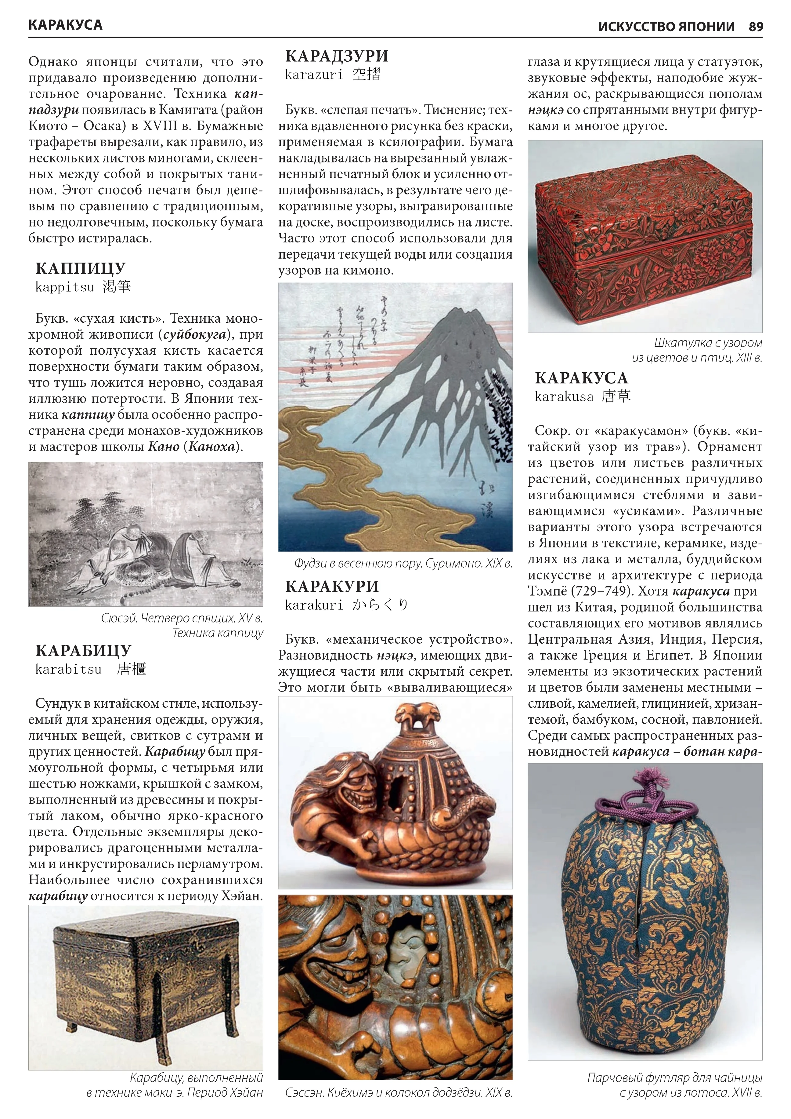 Описание:Энциклопедия включает более 800 статей, расположенных в алфавитном порядке. Они рассказывают о различных школах, направлениях, техниках, стилях, жанрах и видах японского искусства. Книга прекрасно иллюстрирована; в ней несколько сотен цветных фотографий и репродукций, что делает ее поистине уникальным изданием такого рода. Энциклопедия адресована всем, кто интересуется историей искусства и культуры.