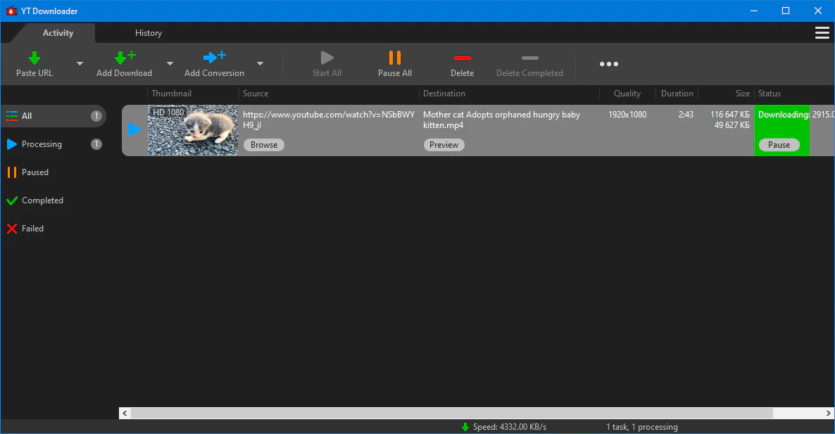 Скачать несколько видео одновременно YT Downloader поддерживает одновременную загрузку. Он позволяет загружать более одного видео одновременно и в безопасное время.