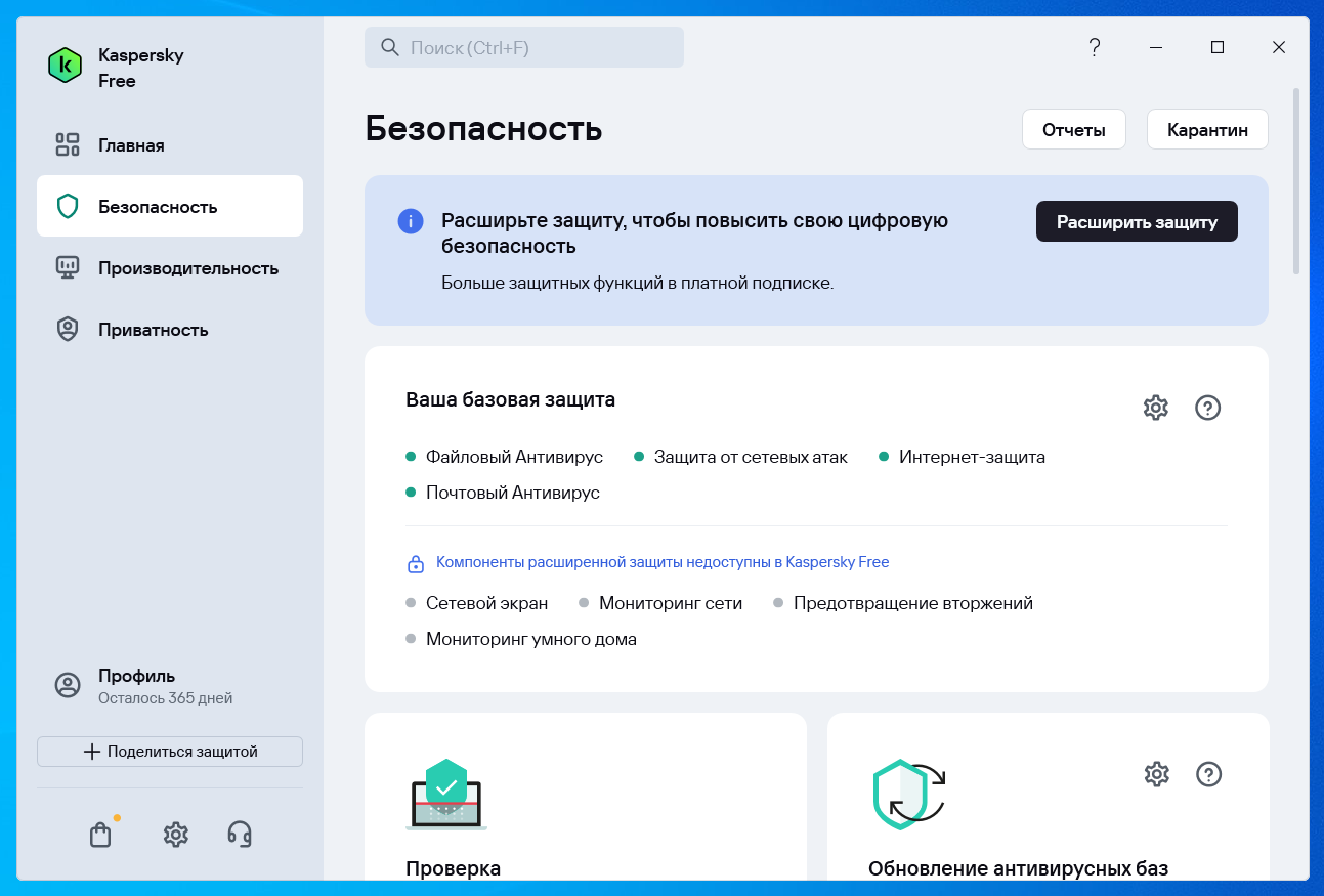 Защита от сетевых атак запускается при старте операционной системы и отслеживает во входящем трафике активность, характерную для сетевых атак. Обнаружив попытку атаки на компьютер, Kaspersky Free блокирует любую сетевую активность атакующего компьютера в отношении вашего компьютера.
