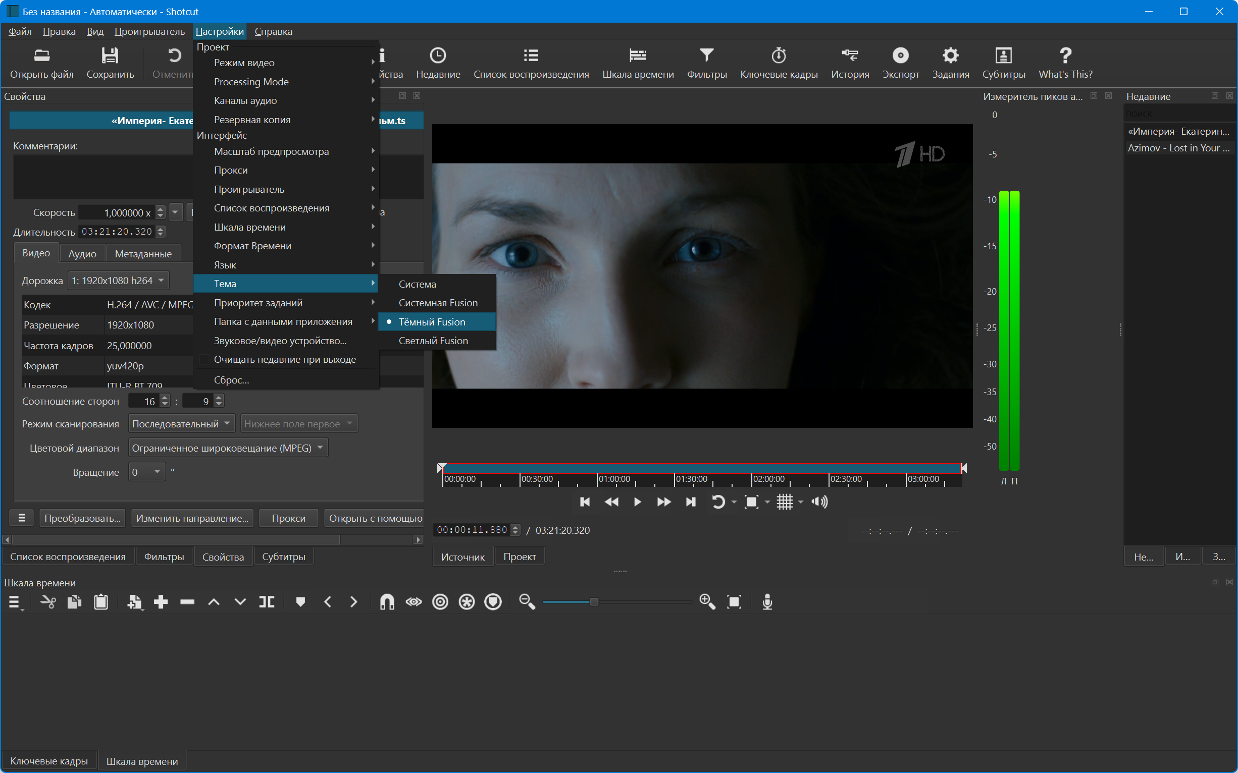- Открытие и проигрывание MLT XML файлов в качестве клипов.