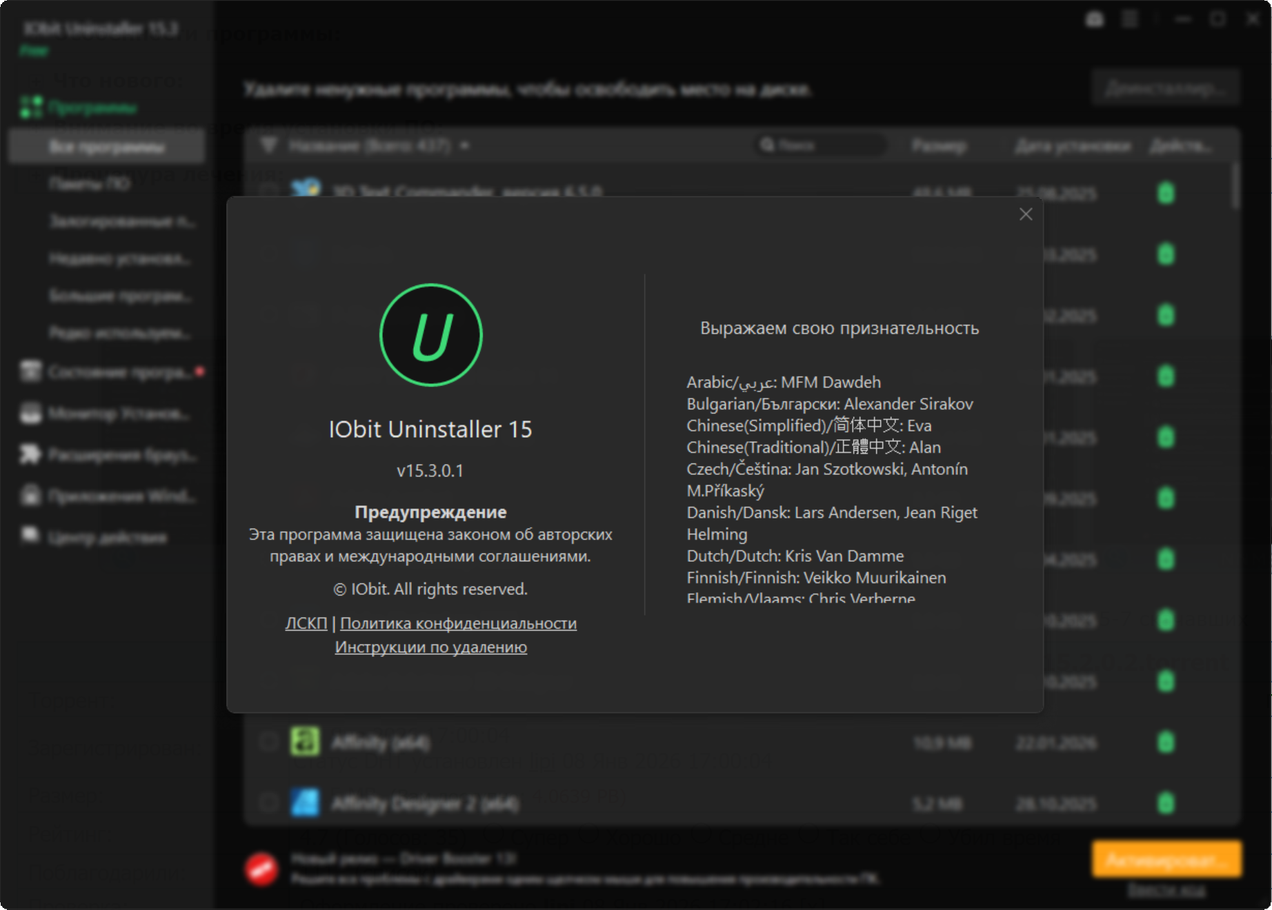 IObit Uninstaller Pro 15.3.0.1 [Multi/Ru]