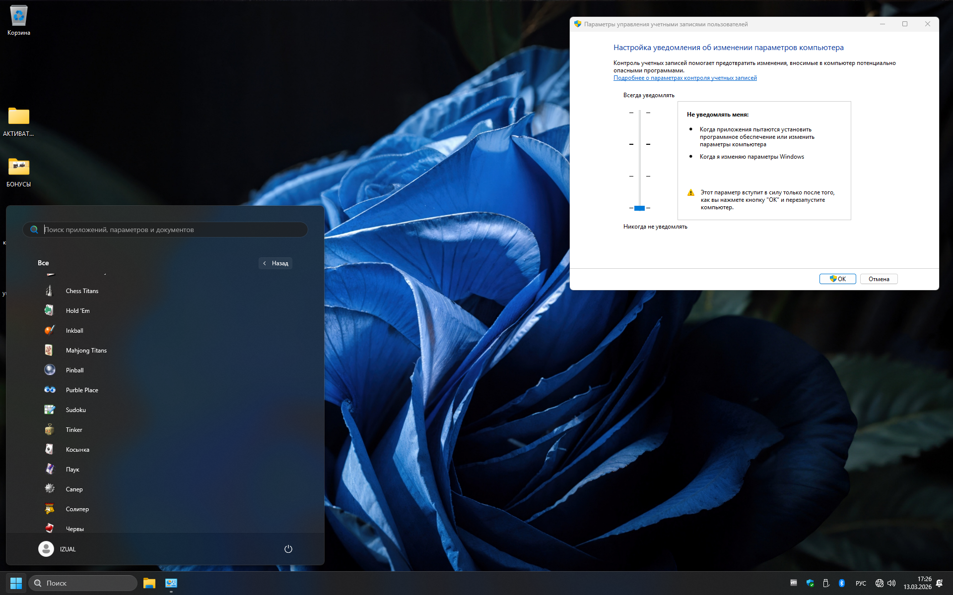 • Отключите контроль учетных записей пользователей (UAC)