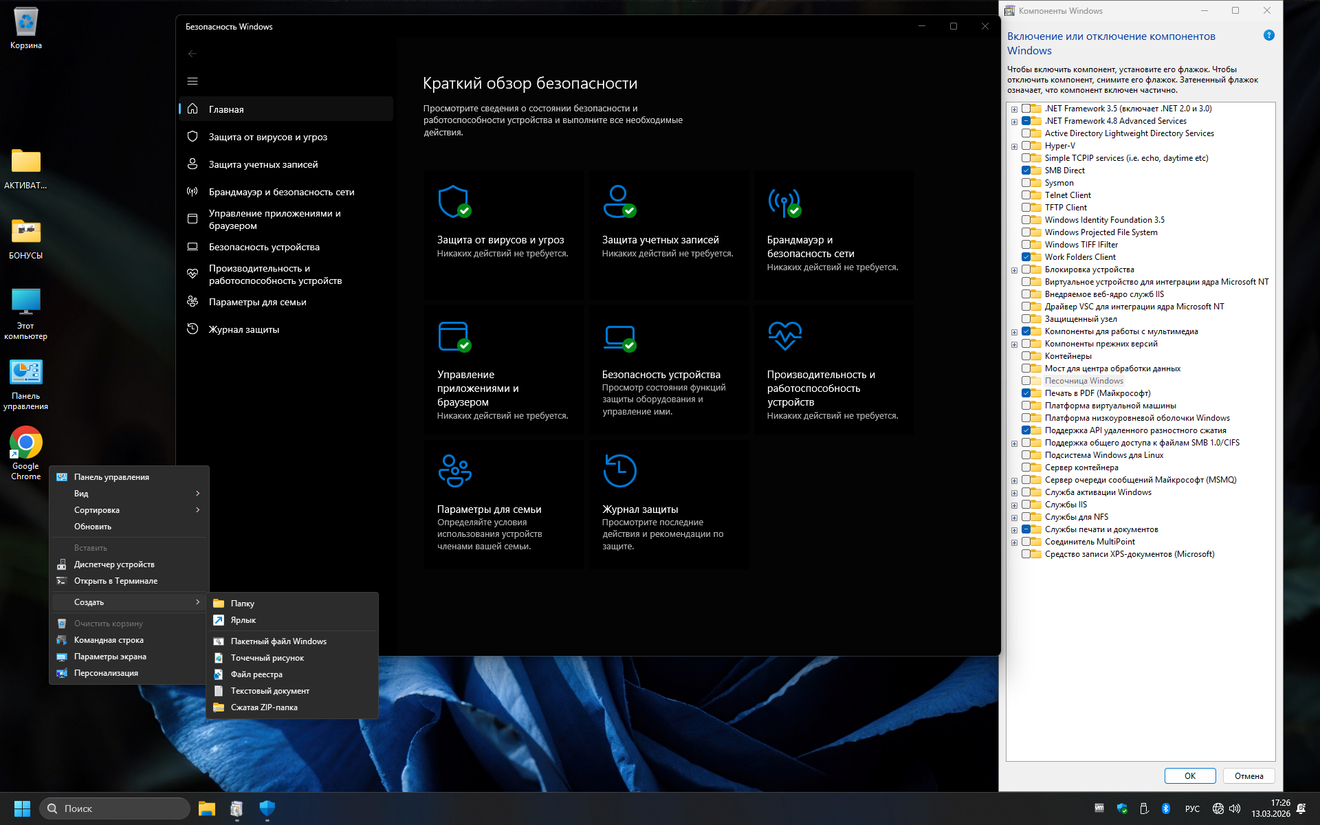 —Включен .Net Framework 3.5 (включая 2.0 и 3.0);