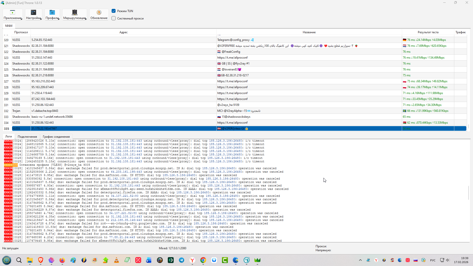 Pashketan Попробовал включил - тоже самое .... Хотя нет , начал перебирать сервера и заработал ! Спасибо ! Сейчас через него пишу , вроде как я понял , у меня через протокол Trojan не работало , а через VLESS сервера пошло