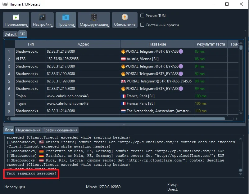 Так как тестирование всех 10к очень долгое, и вы можете отсортировать по скорости и видите, что уже есть достаточное количество конфигов, то тестирование можно остановить так же по ПКМ по группе (NNM)