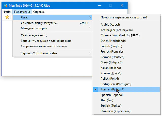 - Добавлена полная поддержка входа в аккаунт YouTube в Firefox в MassTube для Windows 7, Windows 8, Windows 8.1, Windows 10 и Windows 11.