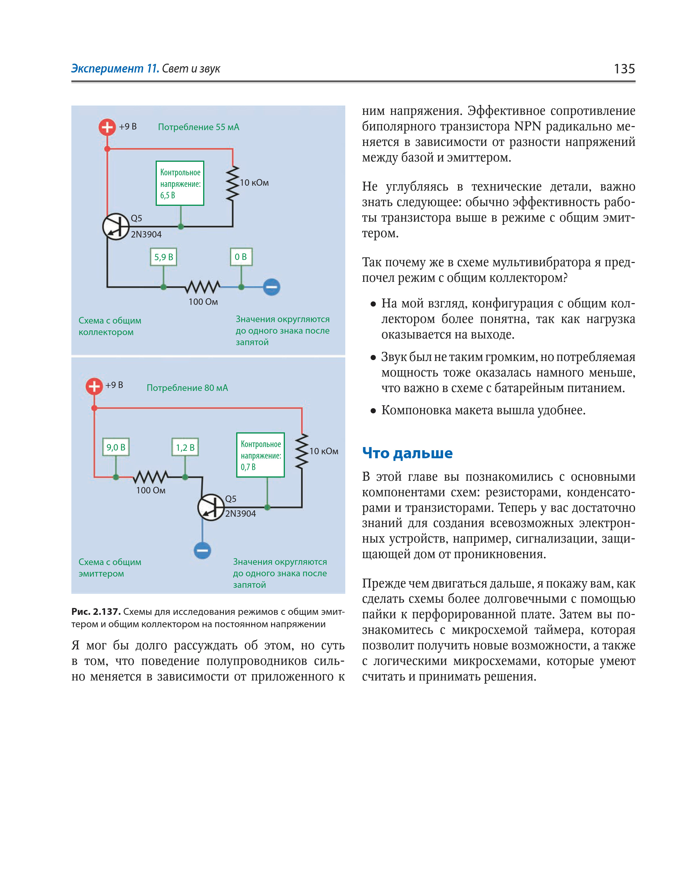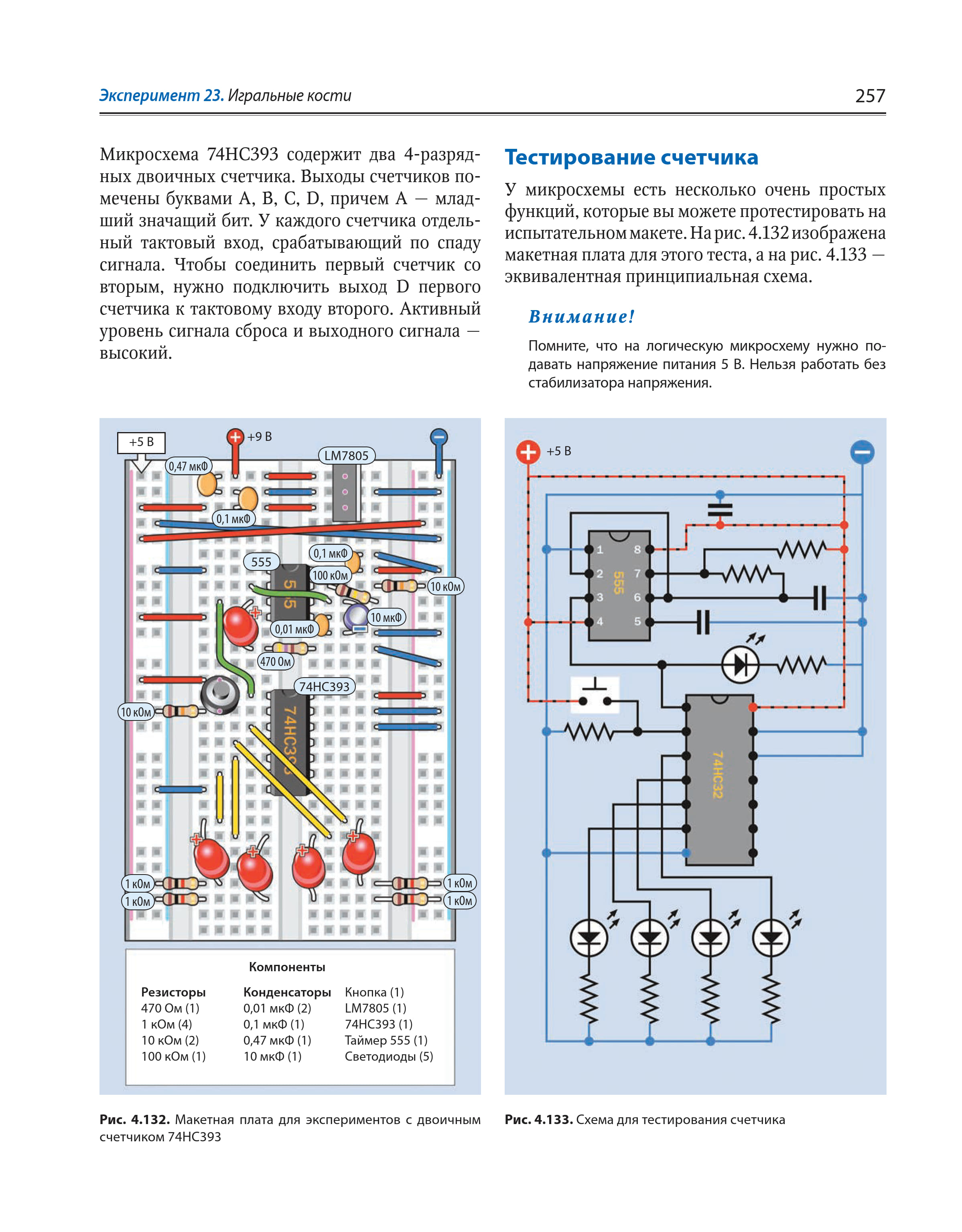 Описание:В ходе практических экспериментов рассмотрены основы электроники и показано, как проектировать, отлаживать и изготавливать электронные устройства в домашних условиях. Материал излагается последовательно от простого к сложному, начиная с простых опытов с электрическим током и заканчивая созданием сложных устройств с использованием транзисторов и микроконтроллеров. Описаны основные законы электроники, а также принципы функционирования различных электронных компонентов. Показано, как изготовить охранную сигнализацию, елочные огни, электронные украшения, устройство преобразования звука, кодовый замок и др. Приведены пошаговые инструкции и включено более 500 наглядных рисунков и фотографий. В третьем, полноцветном, издании значительная часть текста, схемы и диаграммы обновлены, фотографии пересняты в высоком качестве; число компонентов и их цена уменьшены; проекты с использованием платы Arduino переработаны; рассмотрены и другие микроконтроллеры.