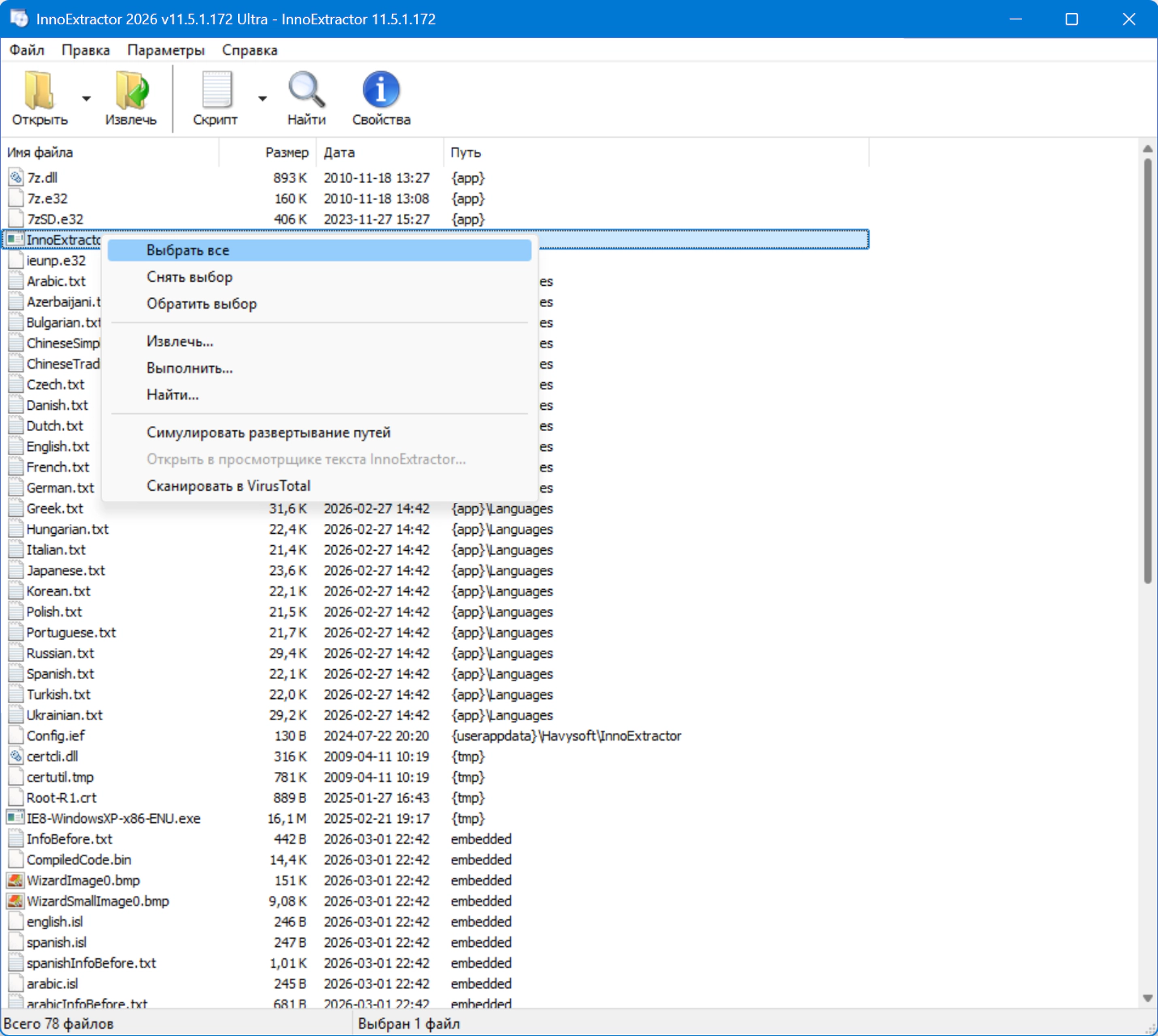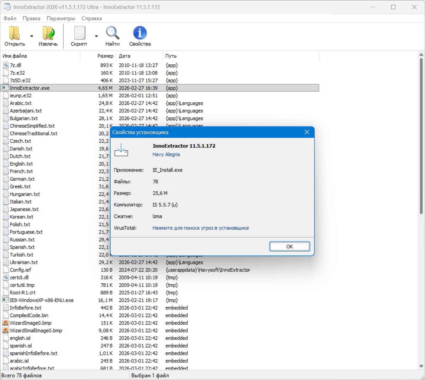 Официальный сайт: InnoExtractorЯзык интерфейса: Русский, Английский и другие