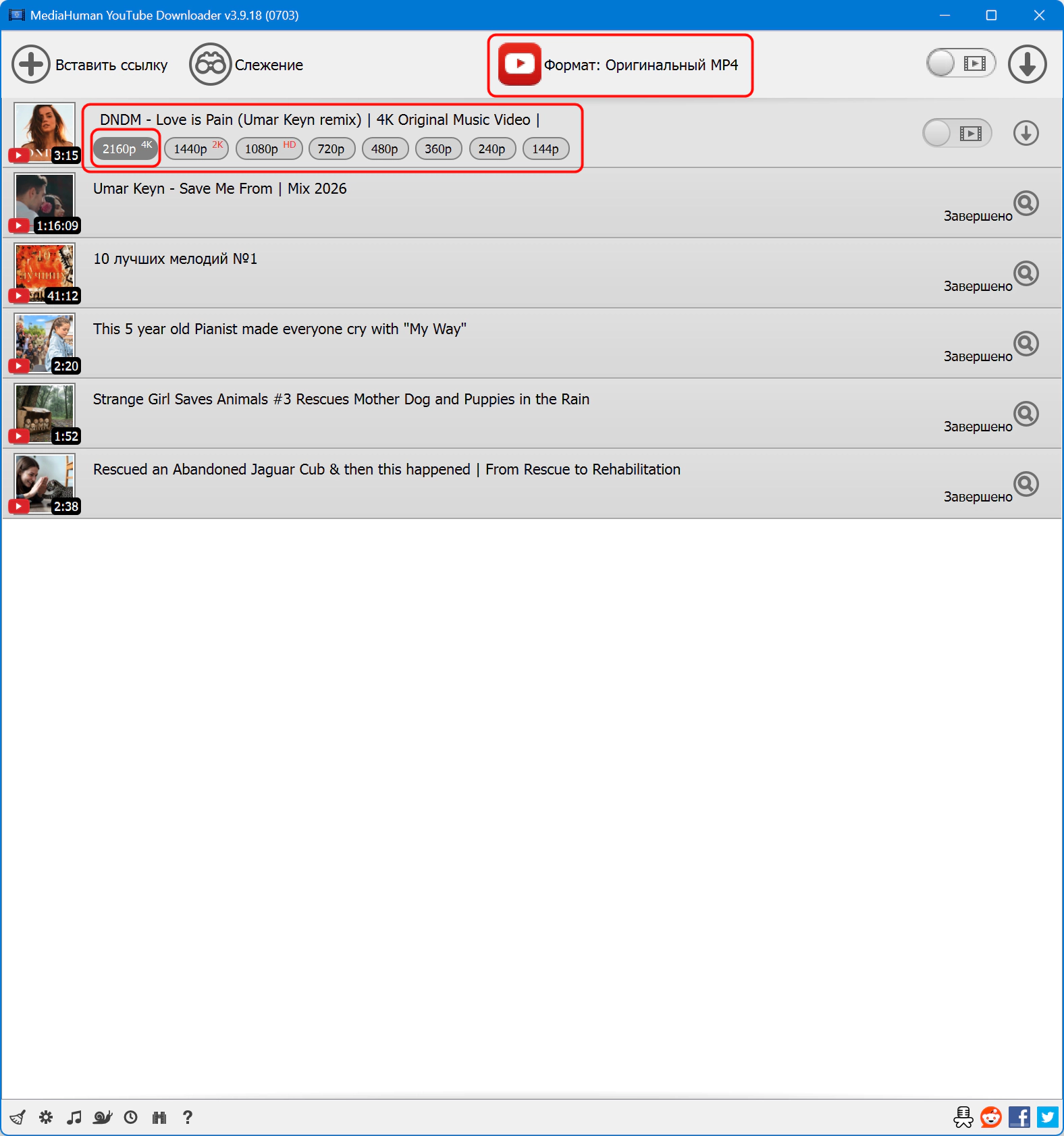 - Скачивает в оригинальном качестве и конвертирует