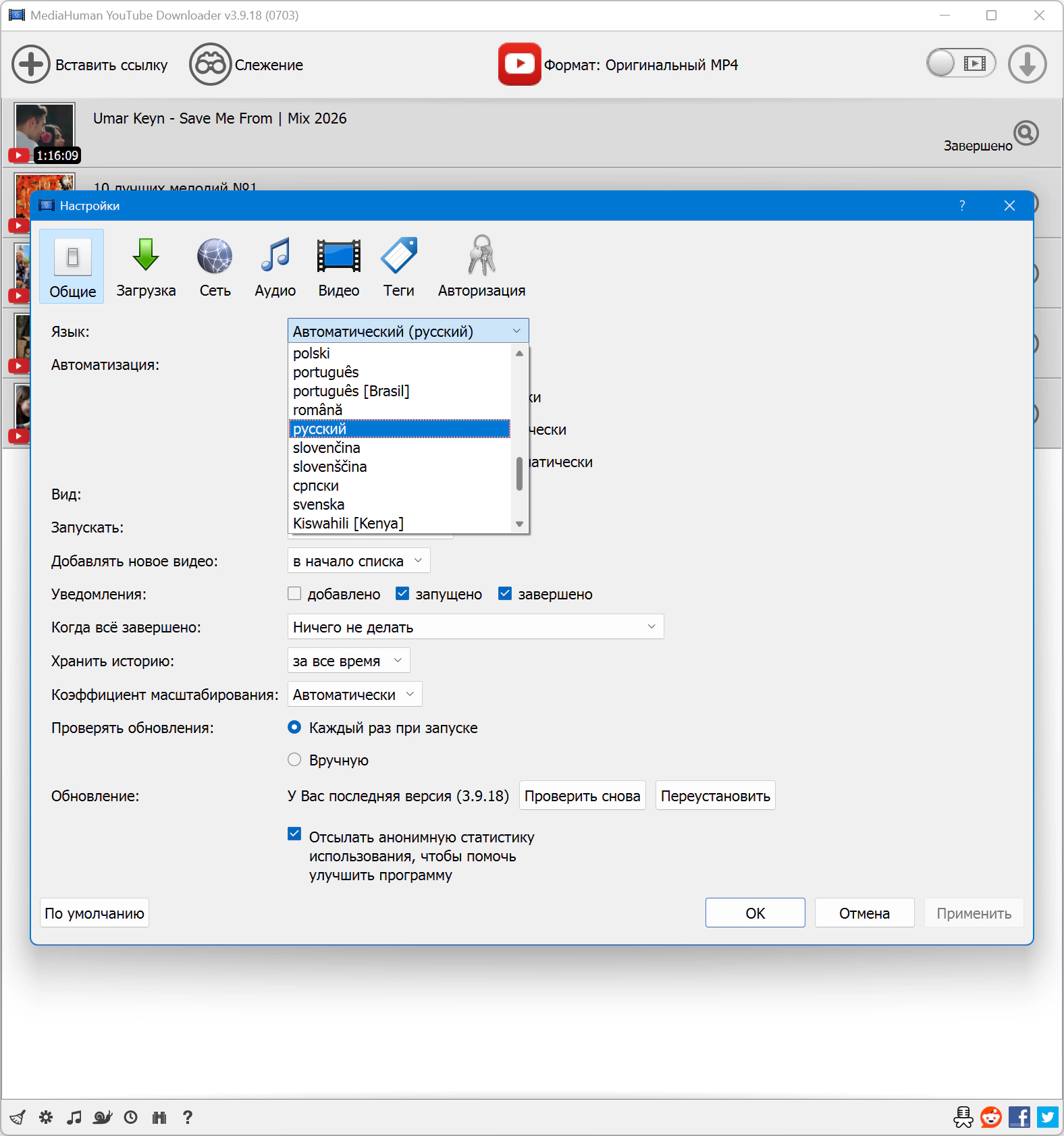 Добавление в iTunes/Music.app В настройках программы можно выбрать опцию автоматического добавления скачанных роликов в библиотеку iTunes/Music.app. Также есть возможность указать плейлист, куда следует добавлять загрузки.