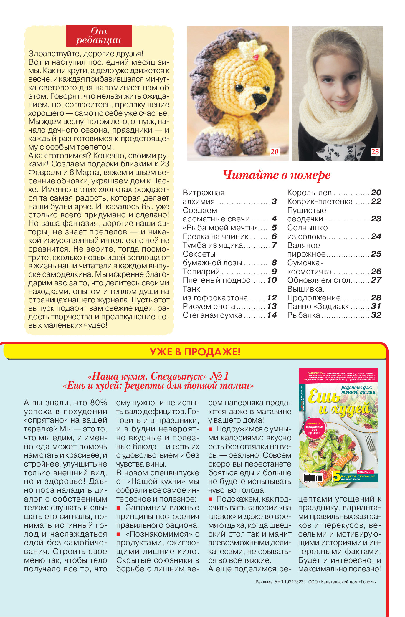 Описание:«Делаем сами» — журнал для мастеров и мастериц, находящихся в постоянном поиске свежих творческих идей и решений. Уникальность издания в том, что оно состоит главным образом из писем читателей. В каждом номере: схемы популярных вышивок, идеи для детского творчества, советы по ремонту, оформление дачного участка и дома, секреты рыбалки, новые техники рукоделия, мастер-классы идеи с обложки! Авторы делятся своим опытом, дают полезные практические советы о том, что можно спаять и вырезать, выпилить и выстругать, собрать и склеить, выкроить и сострочить, вышить, связать и сплести СВОИМИ РУКАМИ, чтобы сделать свой дом, дачу, участок красивее и уютнее, а жизнь — комфортнее и интереснее.