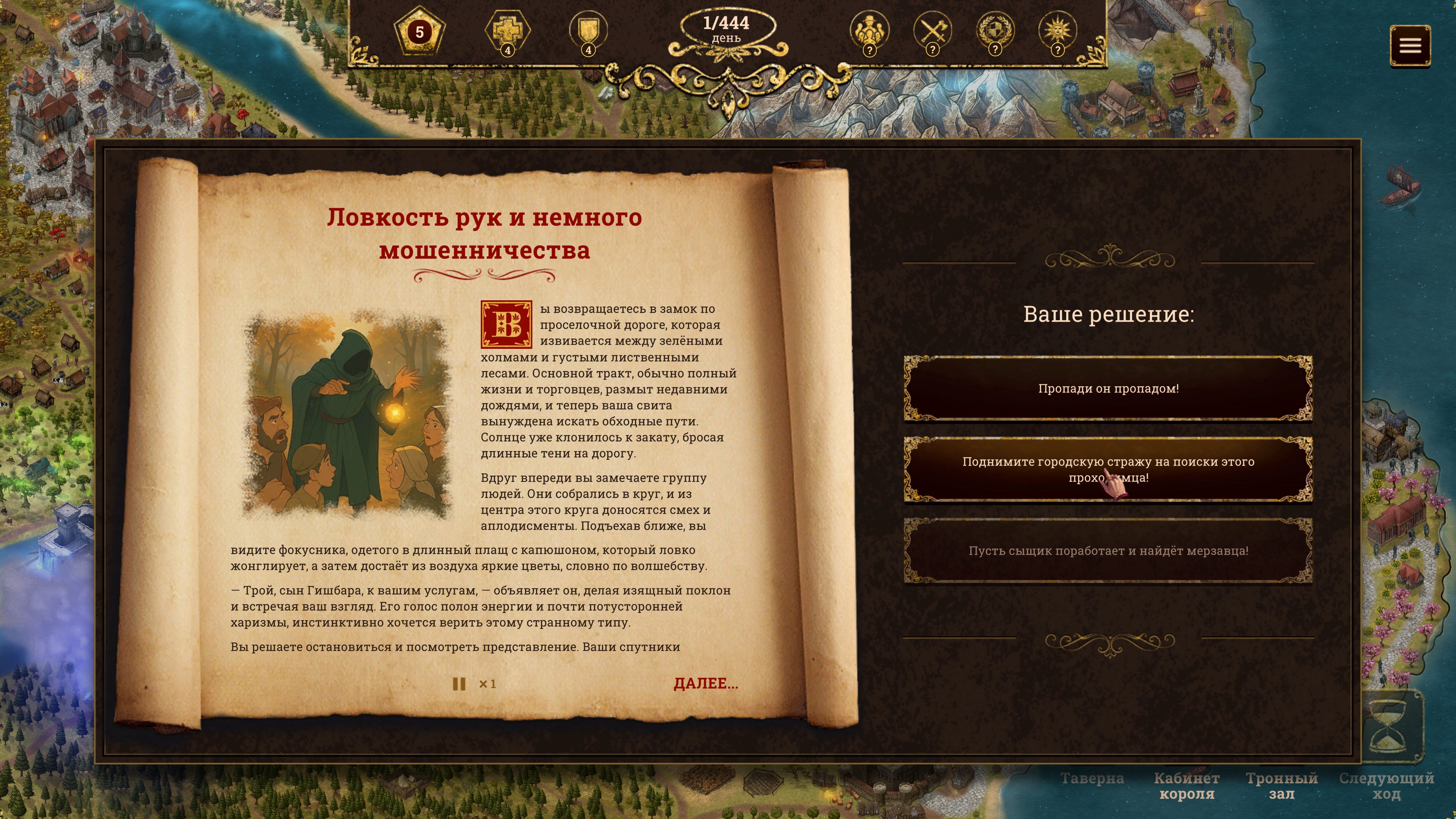 Описание:The Succession of Changing Kings ставит вас во главе королевства, находящегося на грани катастрофы. Земли, некогда богатые, теперь пришли в упадок. Поля заросли сорняками. Торговые пути опустели, а лучшие люди покидают свою родину. Пошаговый симулятор управления королевством, с акцентом на принятие решений. Выживешь ли ты и приведёшь королевство к процветанию или умрёшь в безвестности? Трон ждёт тебя. - Стройте здания, нанимайте подданных, решайте судьбу вассалов и принимайте ключевые решения, которые могут повлиять на судьбу всего королевства.