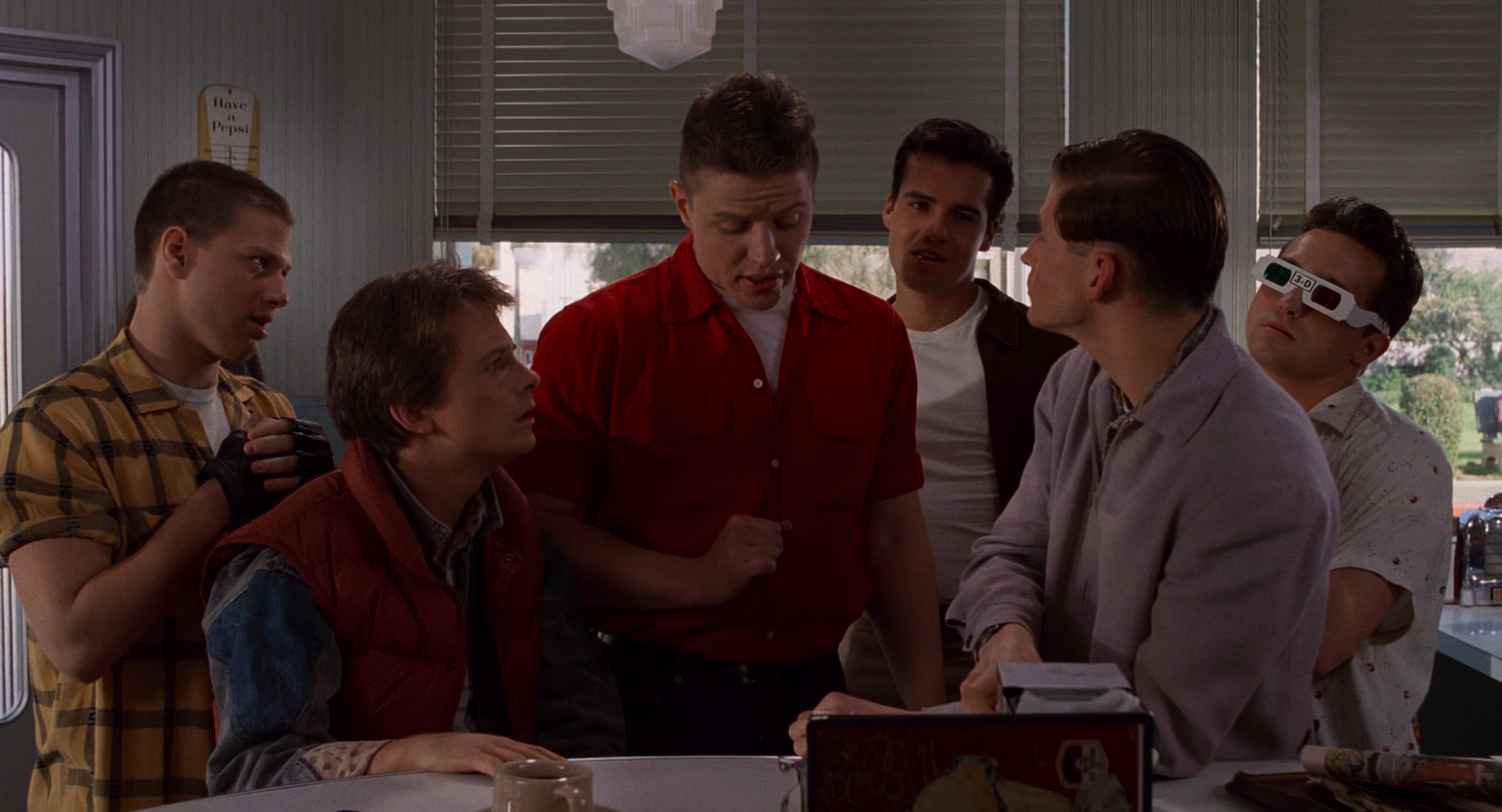 Описание: Подросток Марти с помощью машины времени, сооружённой его другом-профессором доком Брауном, попадает из 80-х в далекие 50-е. Там он встречается со своими будущими родителями, ещё подростками, и другом-профессором, совсем молодым.