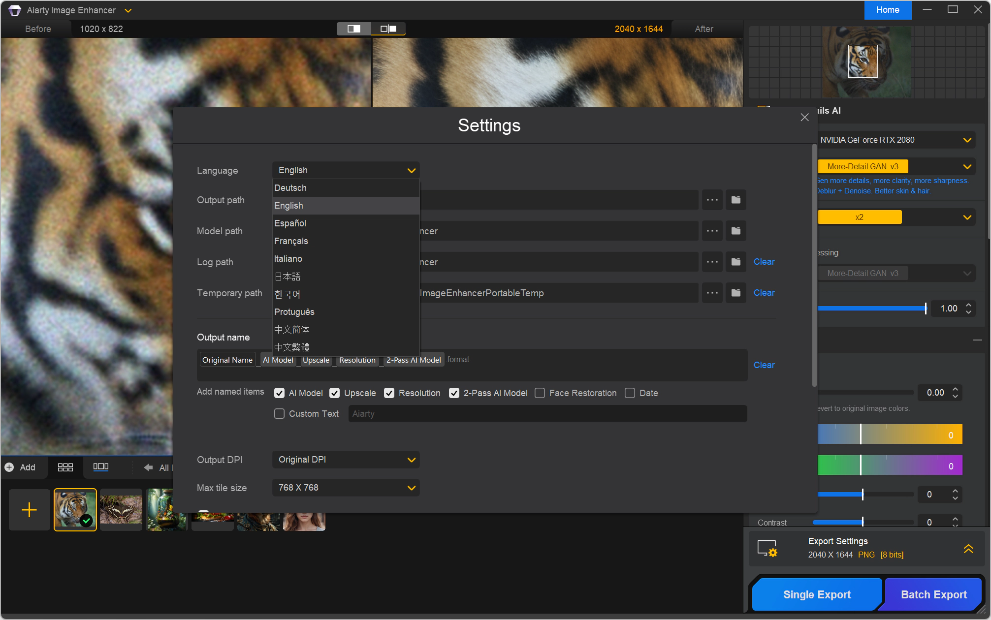 .jpg, .png (8 бит, 16 бит) Вывод в формате TIFF/DNG с поддержкой HDR, усовершенствованное освещение, оптимизированная функция улучшения лиц и управление цветом Для распаковки программы запустите "Aiarty Image Enhancer.exe". Файл запуска программы "ImageEnhancerPortable.exe". Папка сохранения Output расположена в Aiarty Image Enhancer\Output. Папка AiartyIEModel расположена в Aiarty Image Enhancer\Data\ProgramData\Aiarty\ImageEnhancer\AiartyIEModel. Папки Output и AiartyIEModel сформируется после запуска программы. Не требует установки библиотек в систему, не оставляет следов в системе и реестре. Скриншоты: