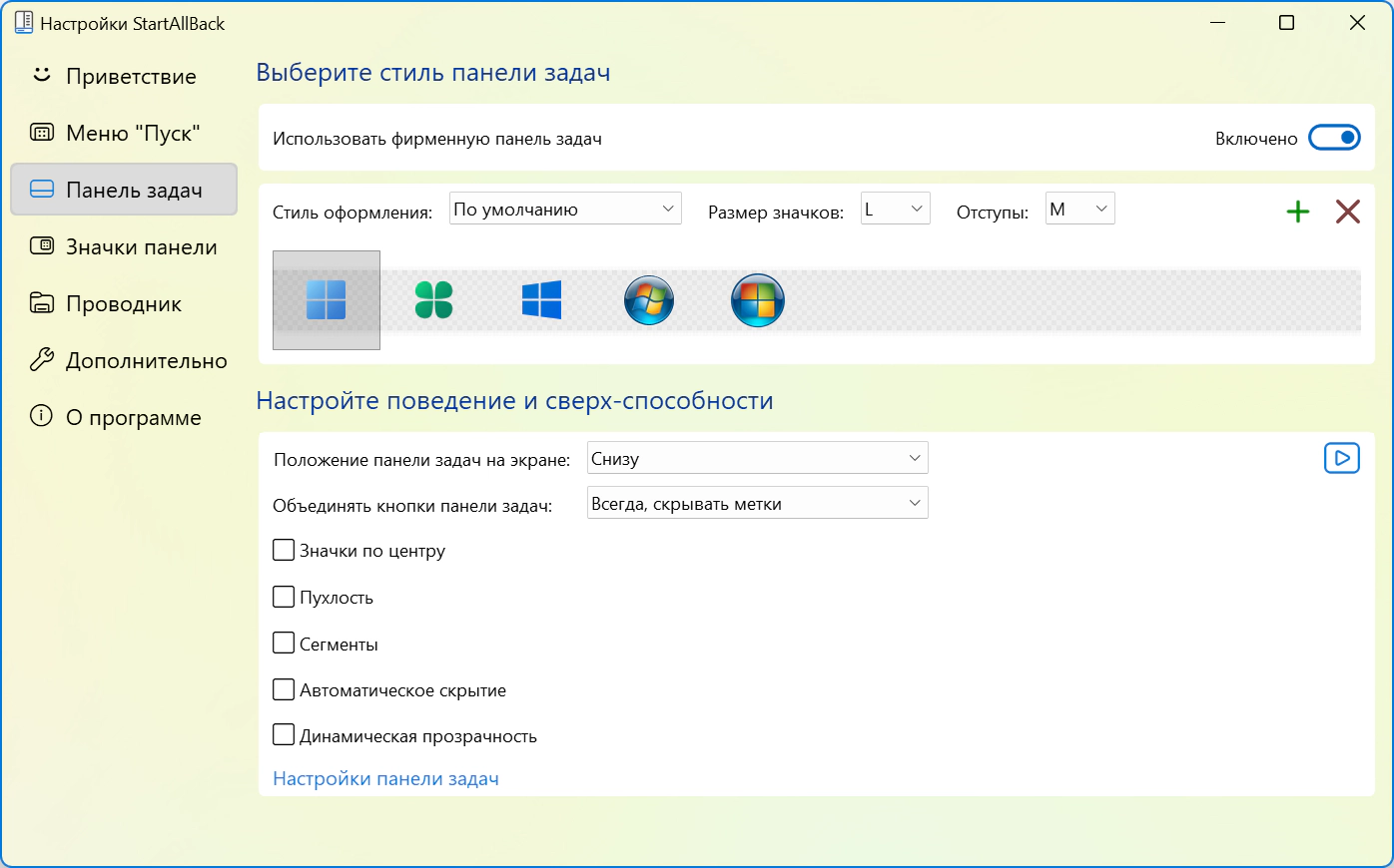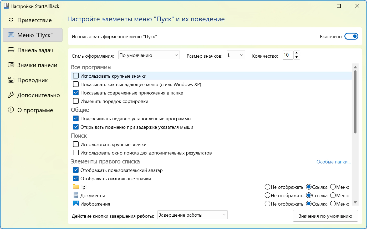 Официальный сайт: StartAllBackЯзык интерфейса: Русский, Английский и другие