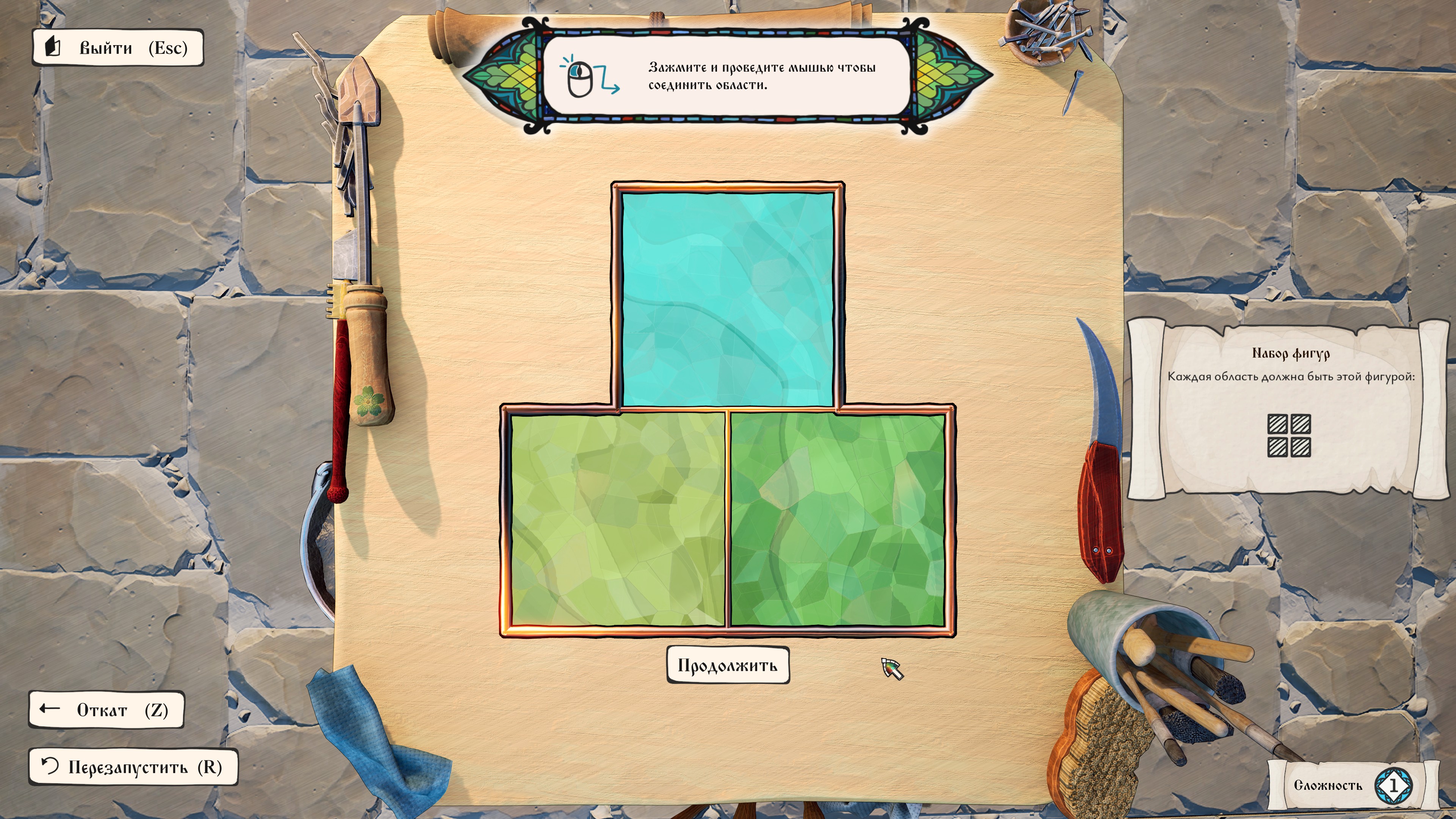 - Разнообразие: Вы найдёте более 20 различных правил, пока будете красить, разрезать и собирать стекло в невероятные витражи.