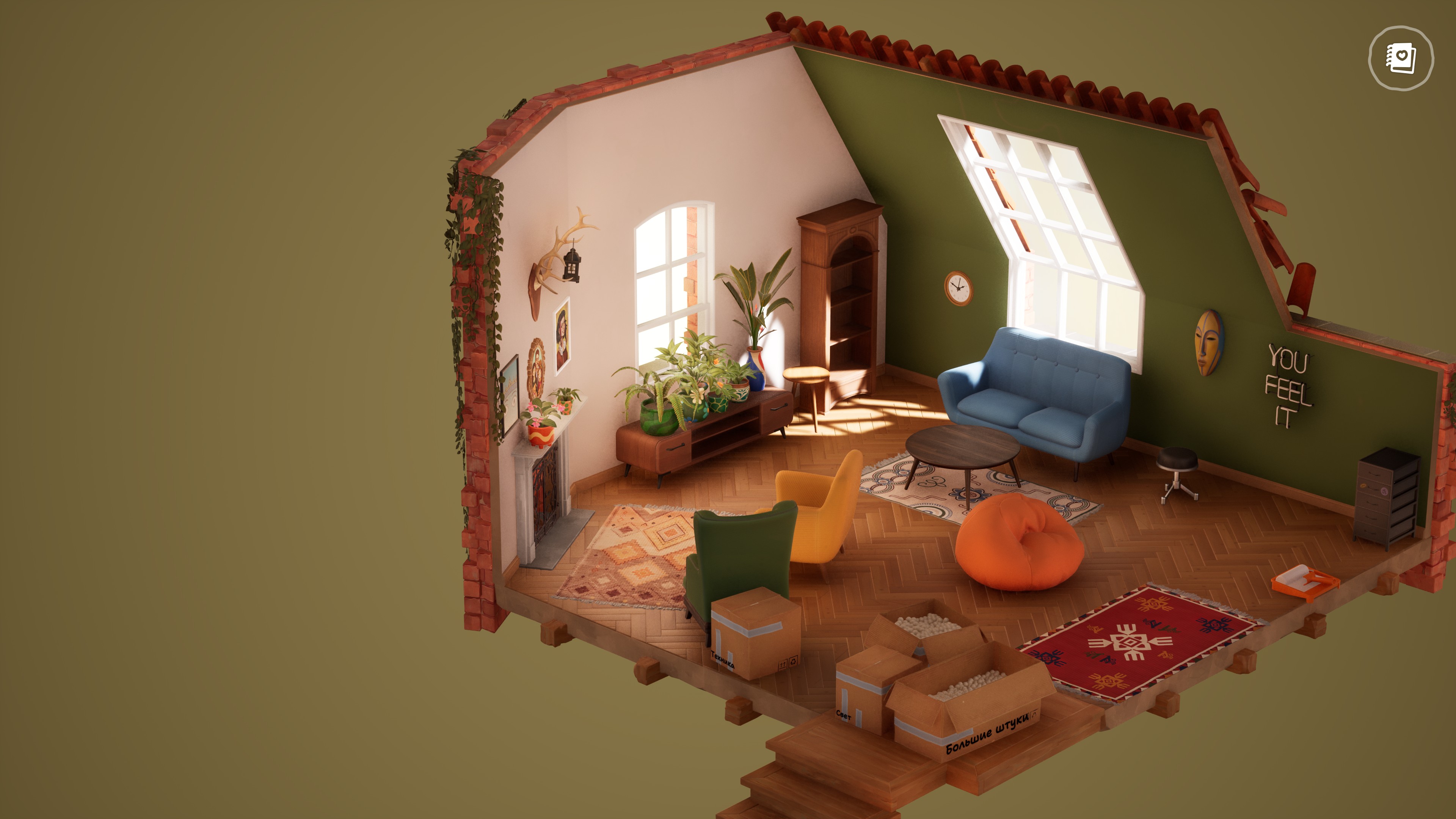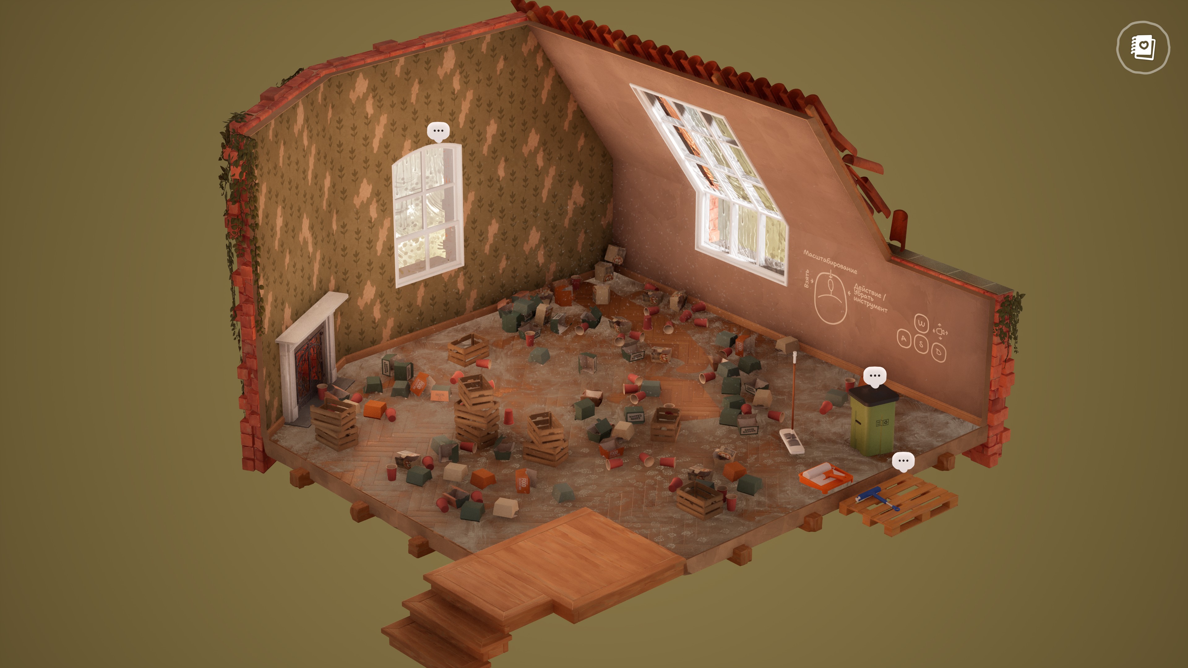 - Погрузитесь в уютную атмосферу, где каждое маленькое решение и каждая деталь имеют значение. Откройте окно, посмотрите, как ветер носит пыль по комнате и послушайте звуки природы. Зажигайте свечи, расставляйте книги на полках, нарисуйте настенный портрет или включите проектор. Каждое прикосновение, каждое решение приносят чувство удовлетворения и моменты озарения.